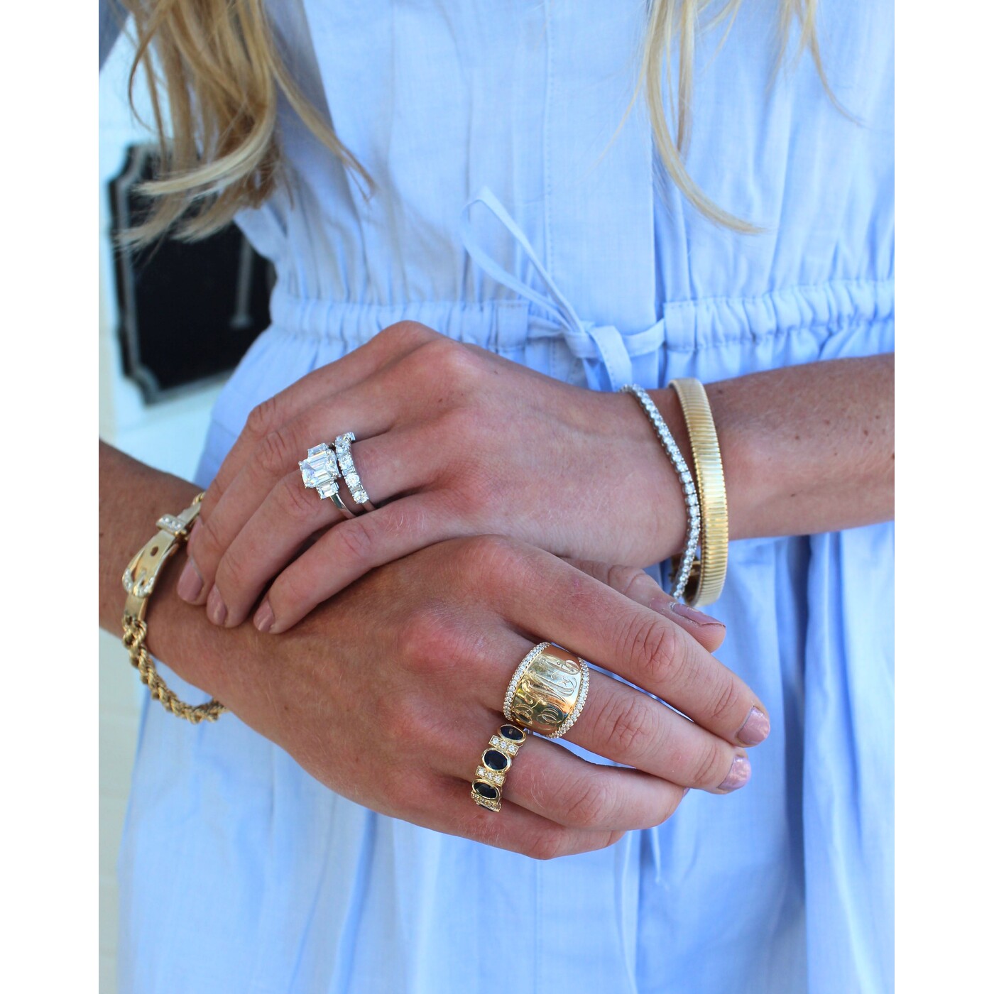 This 10k yellow gold band features rich oval sapphires accented with sparkling diamonds, creating a bold yet refined look. The deep blue color paired with subtle brilliance makes it perfect for stacking or wearing on its own.