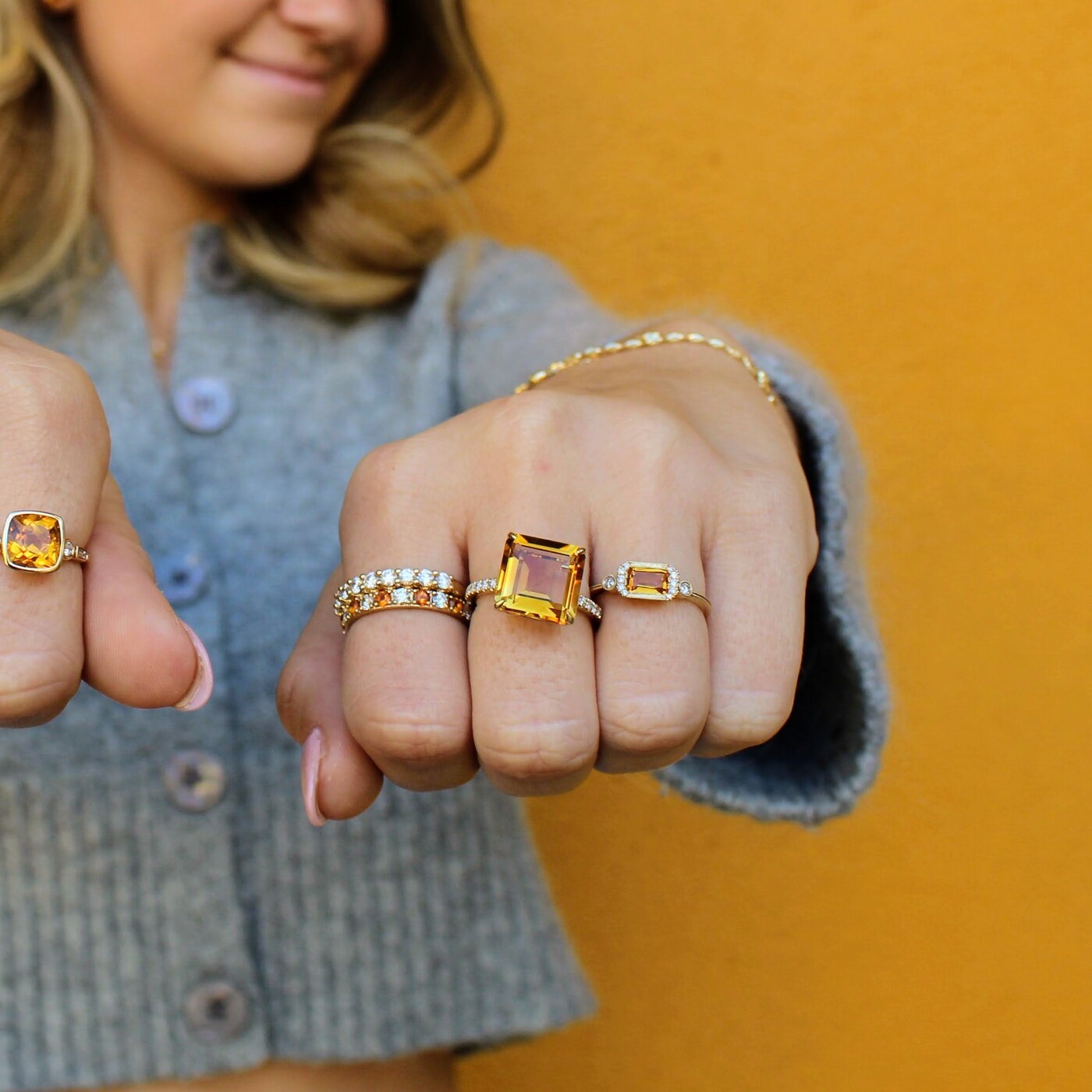 This yellow gold band showcases alternating citrine and diamond stones. Elegant and balanced, it offers refined sparkle and timeless charm in a classic design.