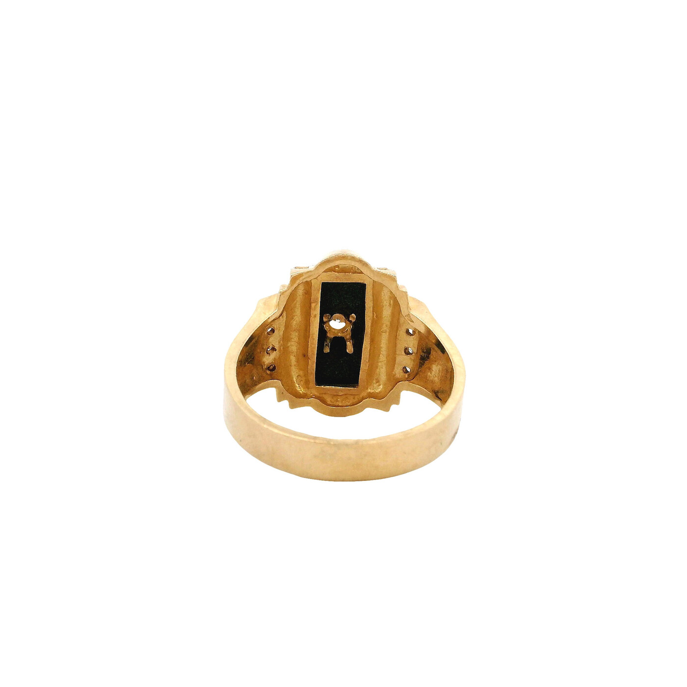 10K Yellow Gold Estate (Likely 1970's) Black Onyx & Cubic Zirconia Ring