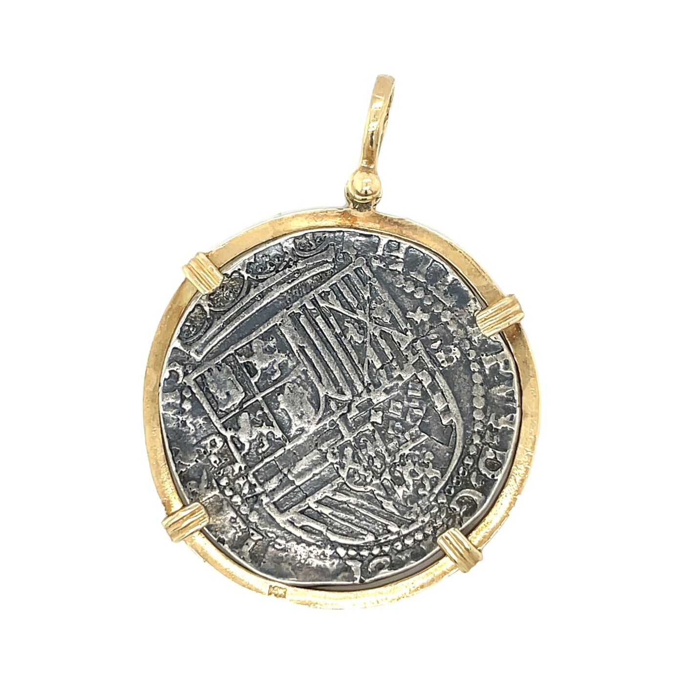 ITEM#: GC146000This authentic replica of an Atocha coin pairs sterling silver with 14K yellow gold detailing. Rich in texture and history, it reflects the enduring legacy of a legendary shipwreck treasure.