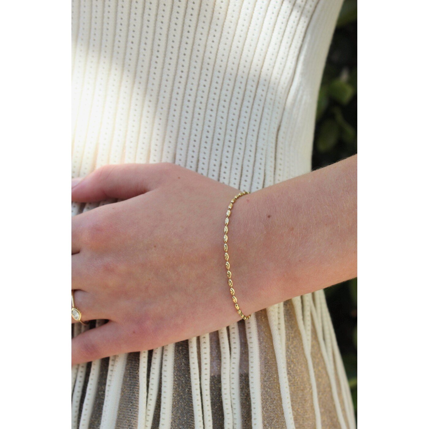 ITEM#: GC144849Take home a piece of Charleston with our yellow gold rice bead bracelet. Featuring diamond cut accents, this dainty bracelet compliments any outfit.
