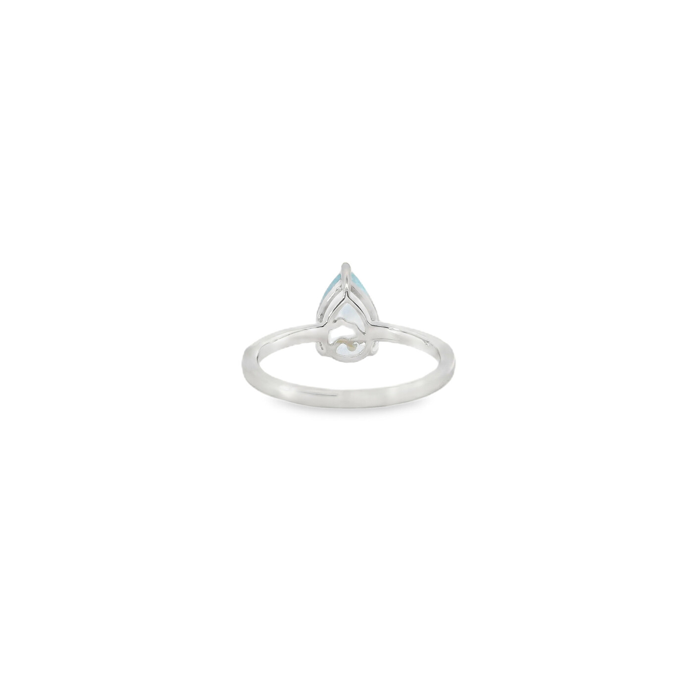 Stones: (1) Pear Shaped Aquamarine weighing 1.50 Carats Light Blue A Quality Three Prong Set & Single Cut Diamonds equaling .07 Carats F-G Color SI1 Clarity