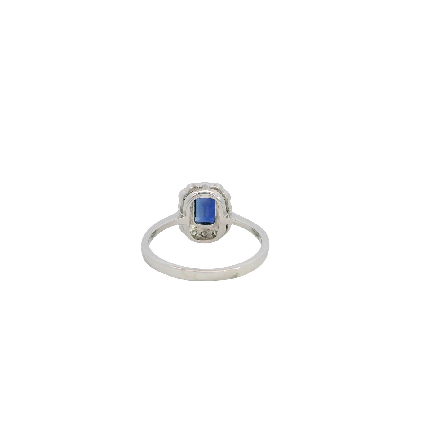 Discover the timeless beauty of this exquisite sapphire and diamond ring. The deep blue sapphire is elegantly framed by a halo of sparkling diamonds, creating a stunning contrast that captures the eye.