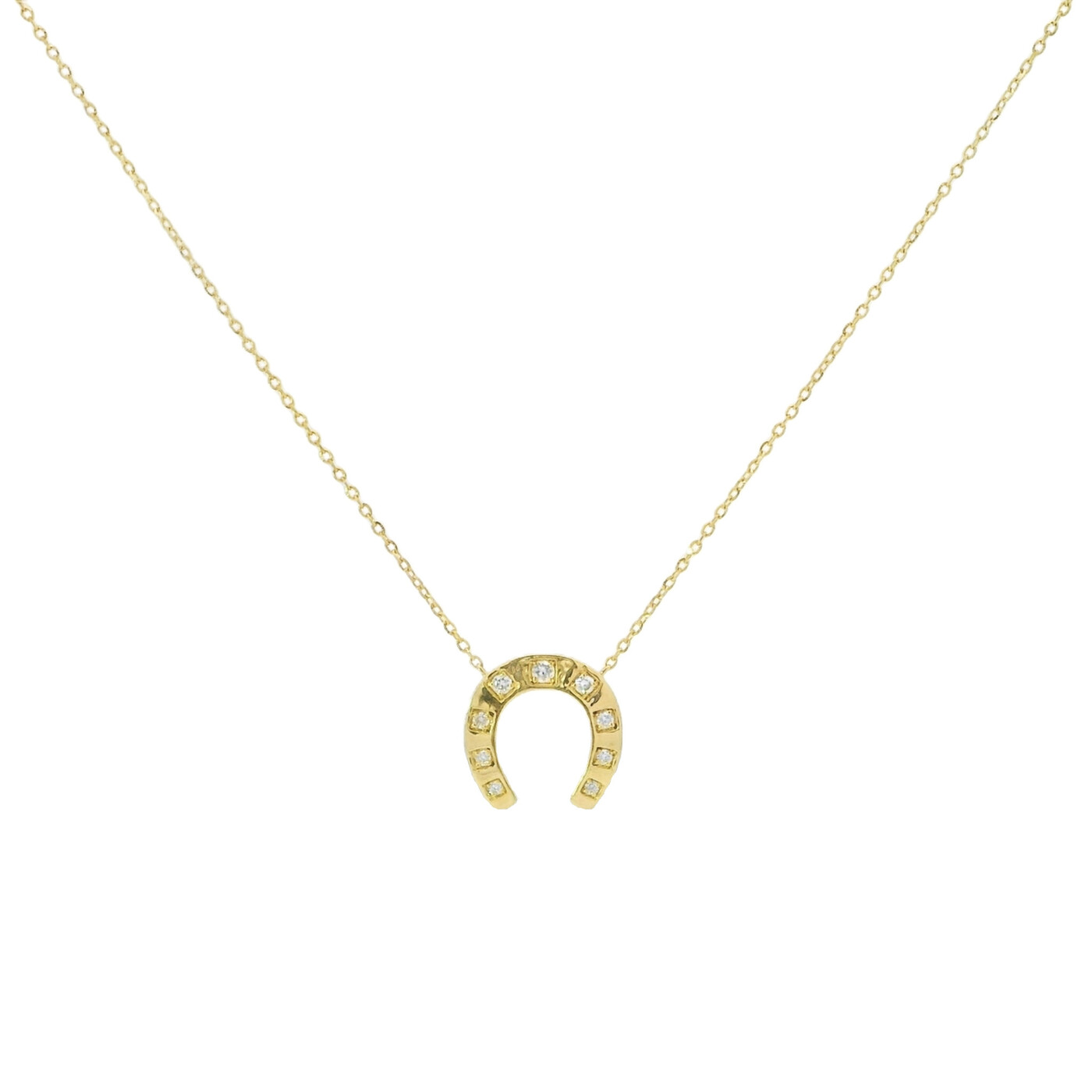 ITEM#: GCB00009380This yellow gold necklace features a diamond-accented horseshoe on a split chain. The design blends subtle sparkle with timeless elegance for a refined everyday statement.