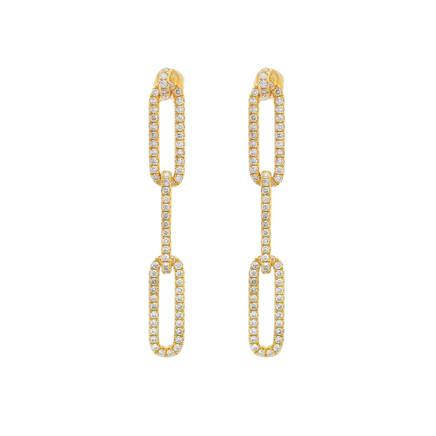 These chic dangle earrings bring modern elegance with a sleek paperclip design accented by sparkling lab grown diamonds. Crafted in 14K yellow gold, they add effortless shine to any look.
