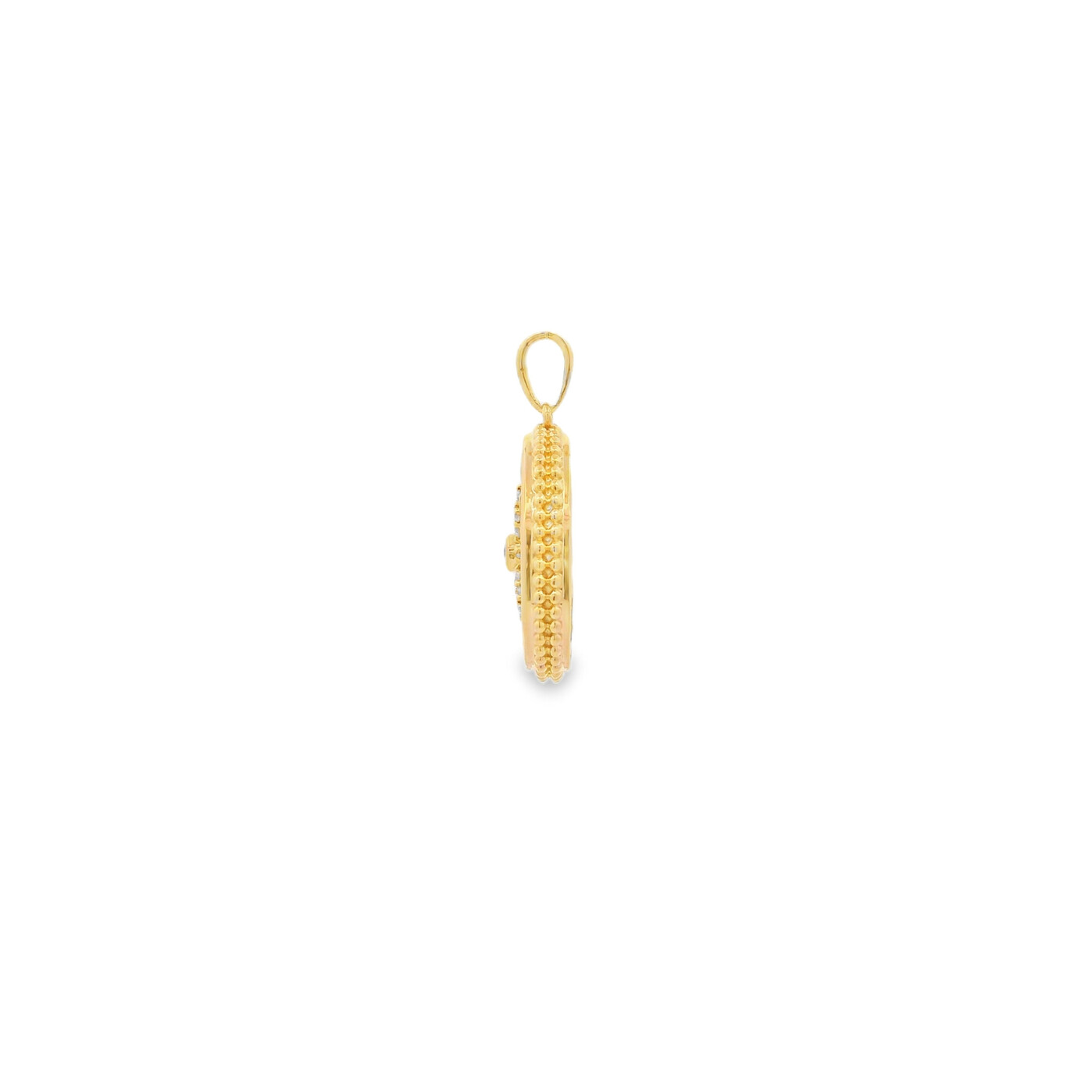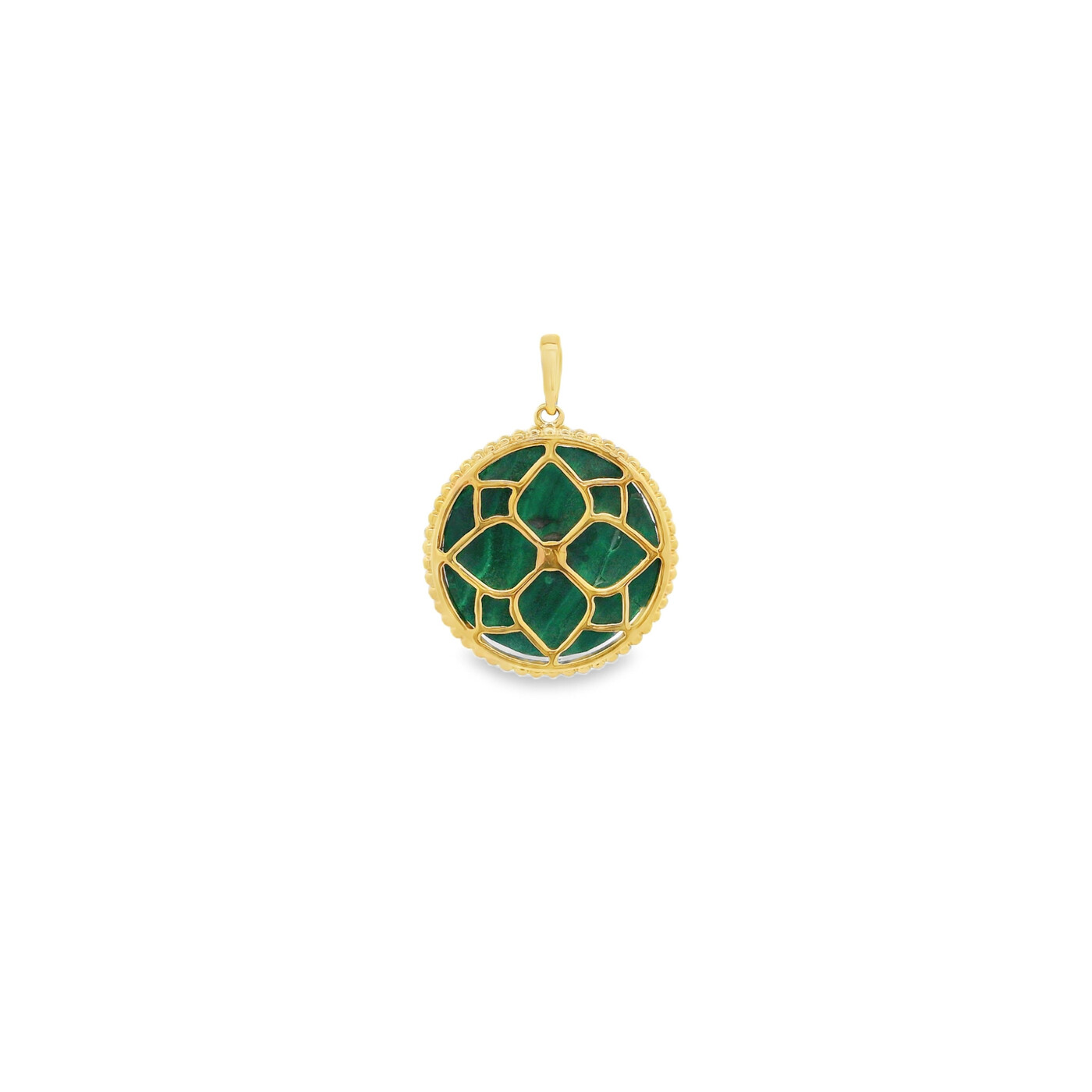 This yellow gold pendant features a deep green malachite backdrop highlighted by a bright diamond compass star. It’s great for adding a bold, meaningful touch to your everyday style and brings a striking pop of color to any chain.