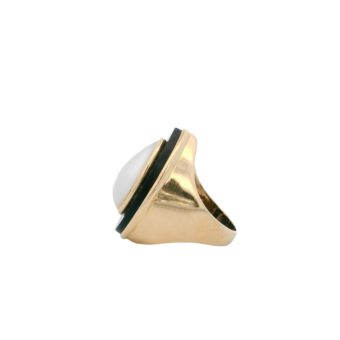 14K Yellow Gold 1970's Black Onyx & 17mm Mabe Pearl Ring 25mm