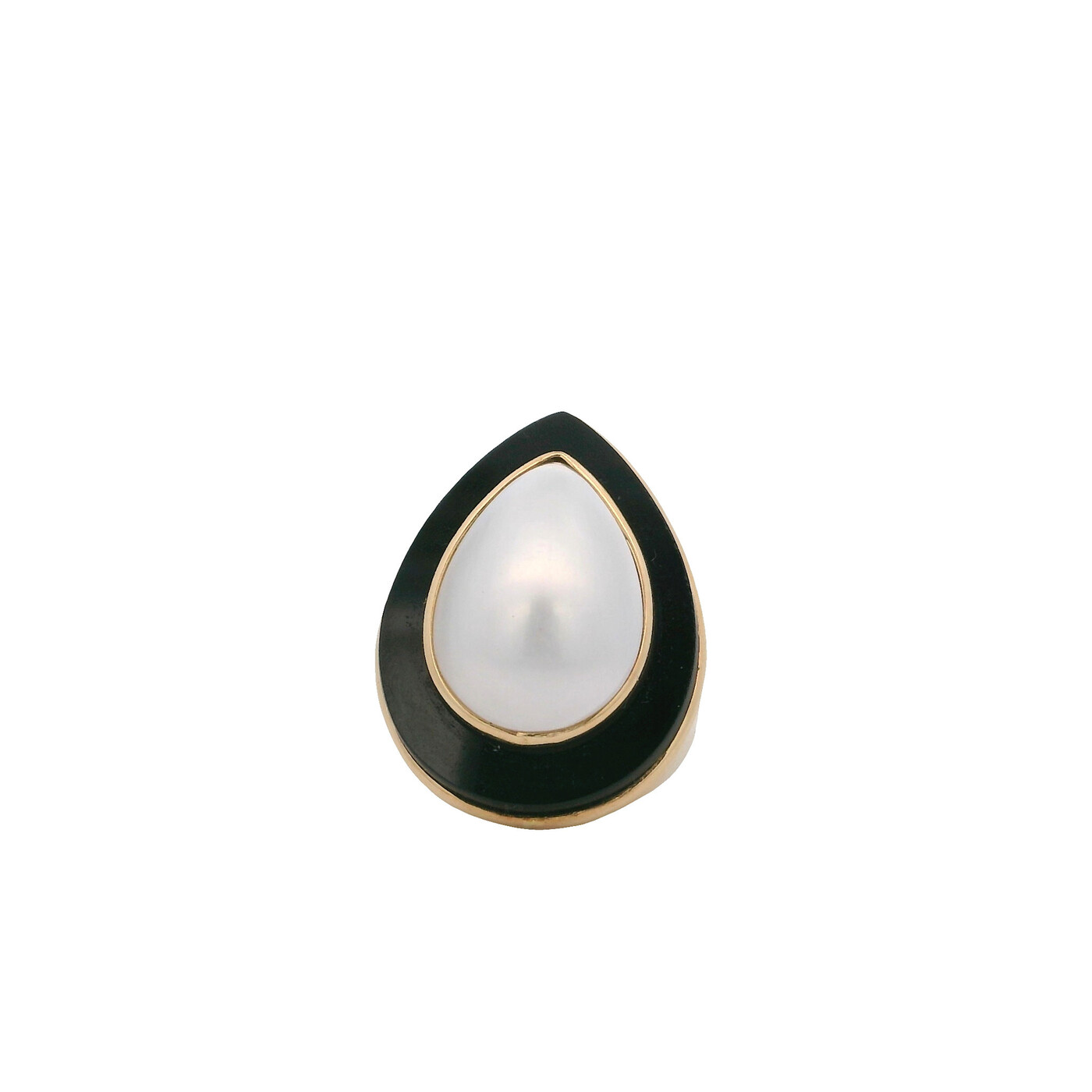 ITEM#: GCB00006034This exquisite teardrop ring features a stunning combination of black onyx and mabe pearl elements, creating a striking contrast that captures the eye.