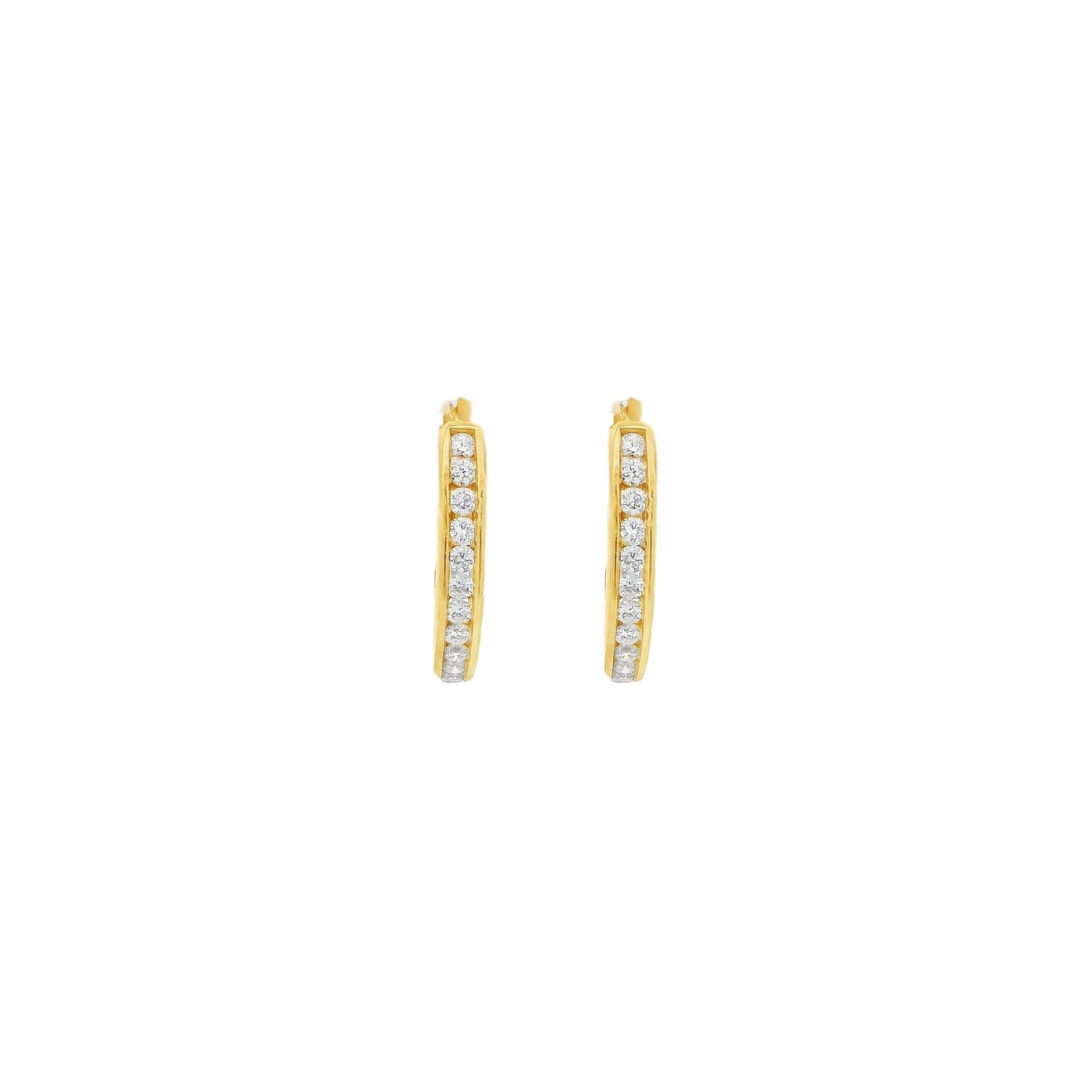 These yellow gold oval channel-set huggie hoops have a smooth, polished shine with a subtle line of diamonds for added sparkle. They’re great for everyday wear and bring an elegant, refined touch to any jewelry lineup.