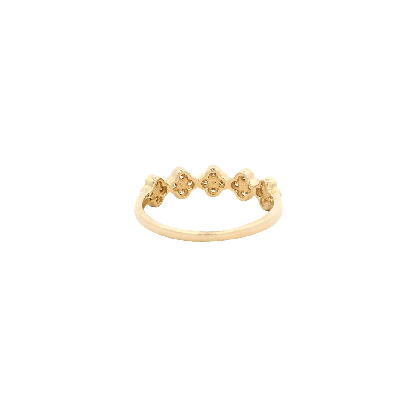 ITEM#: GCB00009111This yellow gold band features five clovers framed in fine milgrain and set with sparkling diamonds, blending graceful detail with timeless elegance.