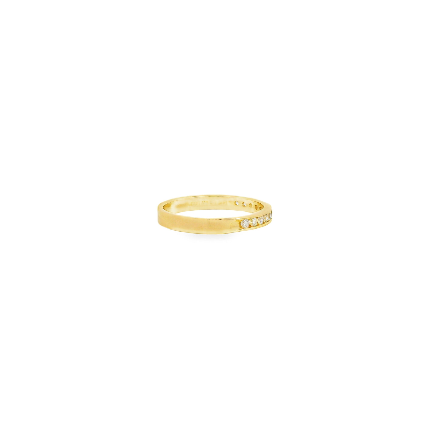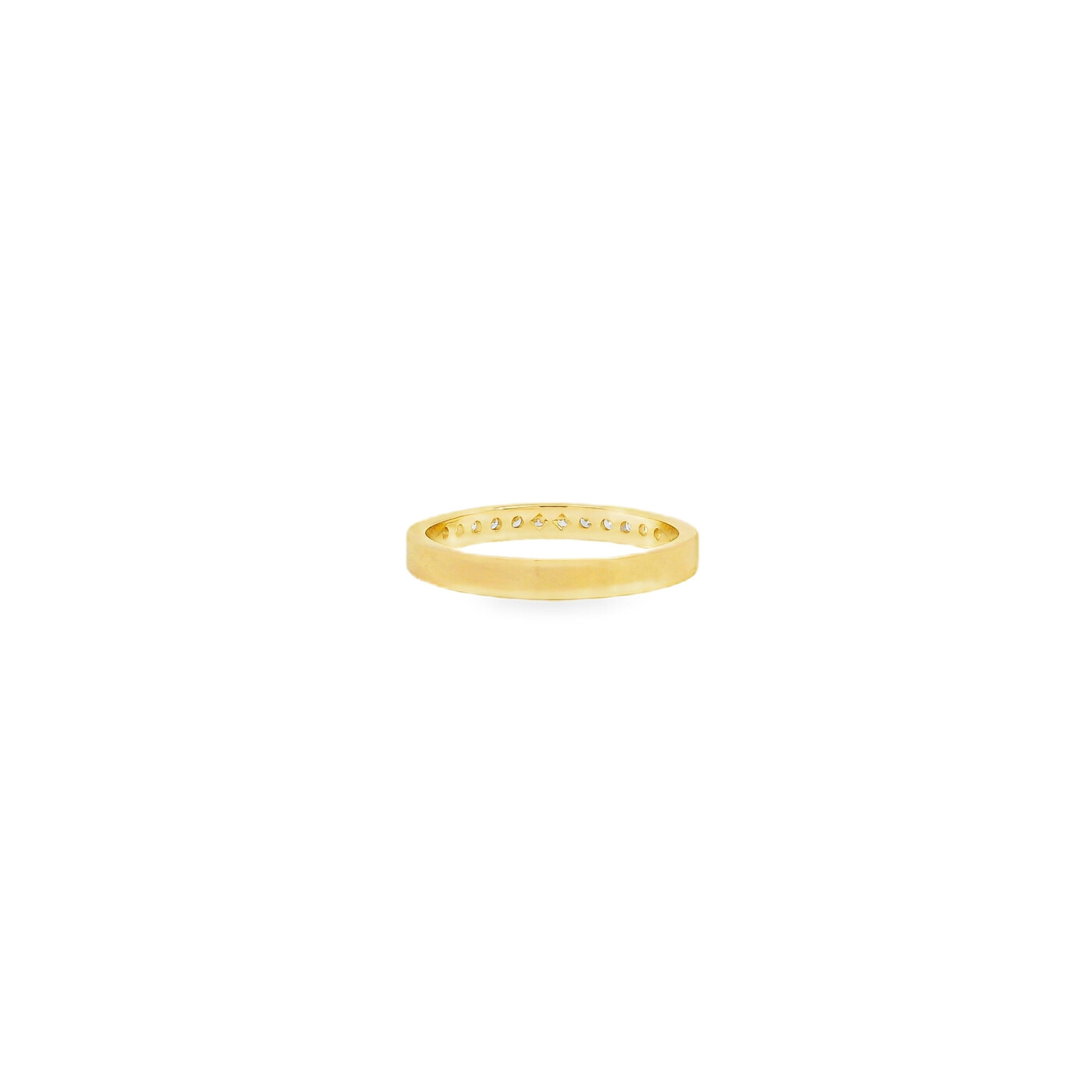 Lab grown diamonds rest within a smooth channel setting in 14K yellow gold. The clean lines create a polished and classic silhouette.