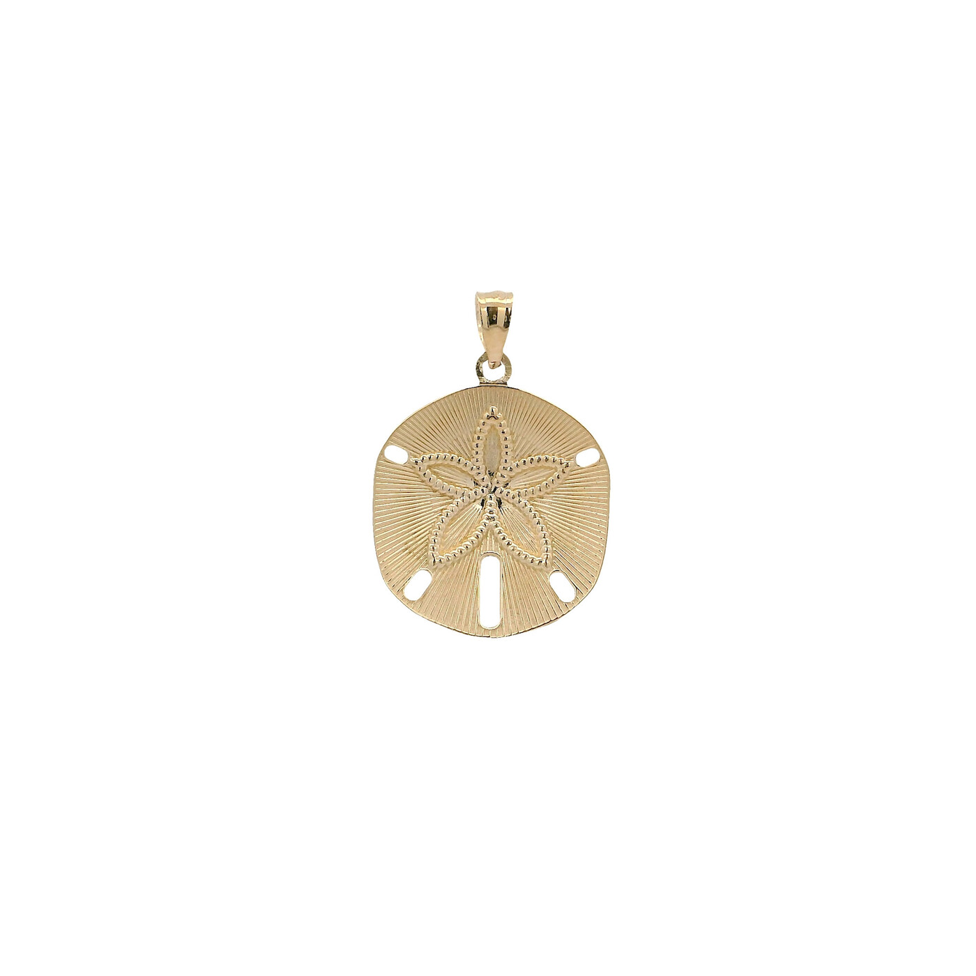 14K Yellow Gold Diamond Cut Satin Textured Sand Dollar Charm