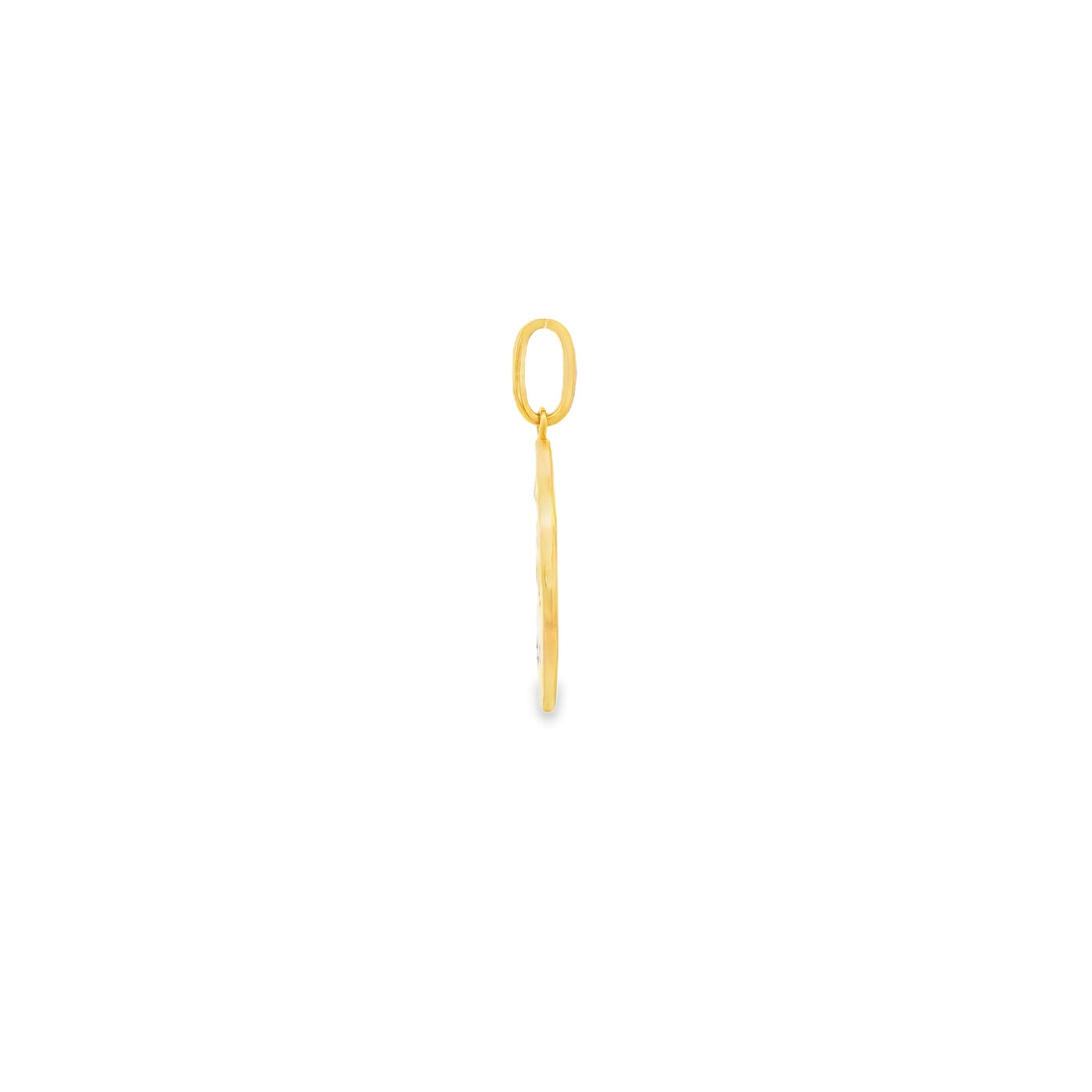 This yellow gold star and moon disc pendant has a polished shine with a subtle touch of diamond sparkle that feels both dreamy and elegant.