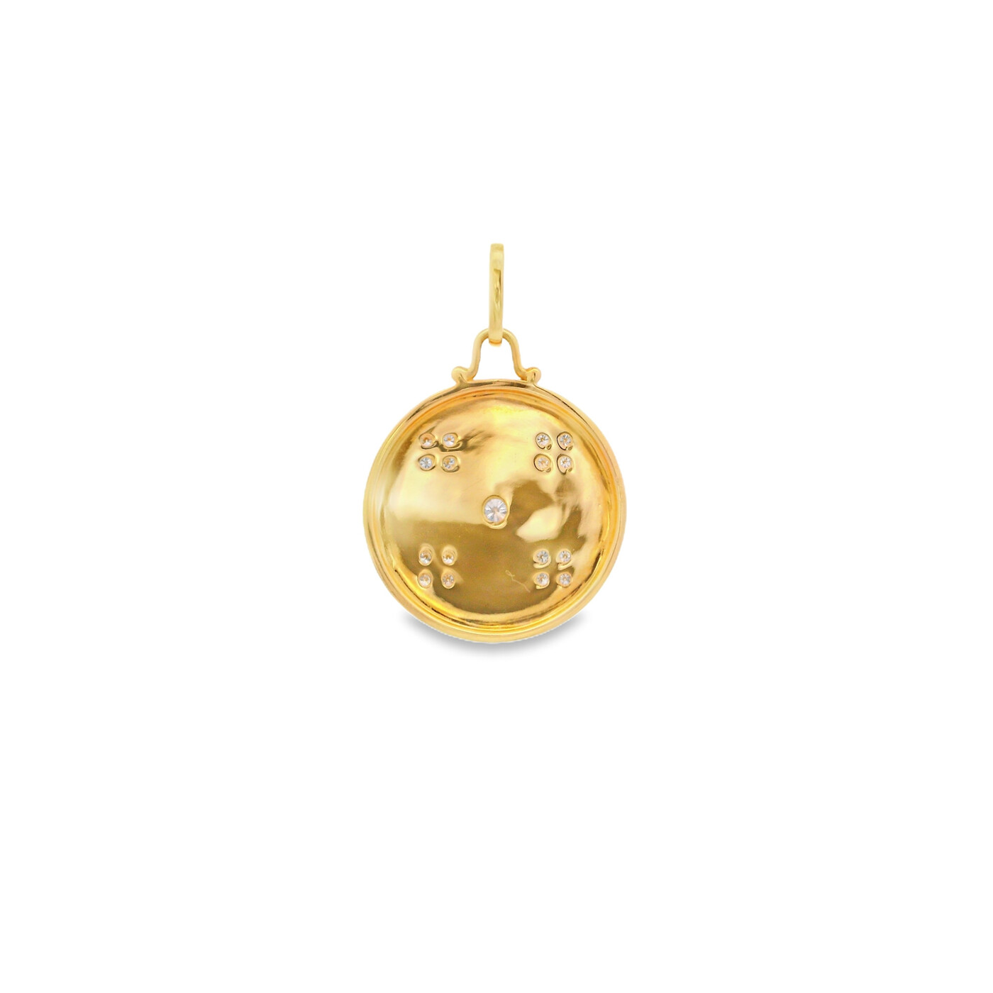 This yellow gold star-floral disc pendant has a polished shine and a touch of diamond sparkle that feels bright and uplifting. It’s great for adding a little radiance to your everyday style and pairs beautifully with both simple and layered chains.