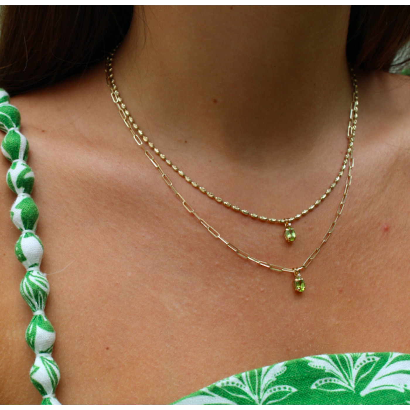 14K Yellow Gold Oval Peridot & Diamond Pendant