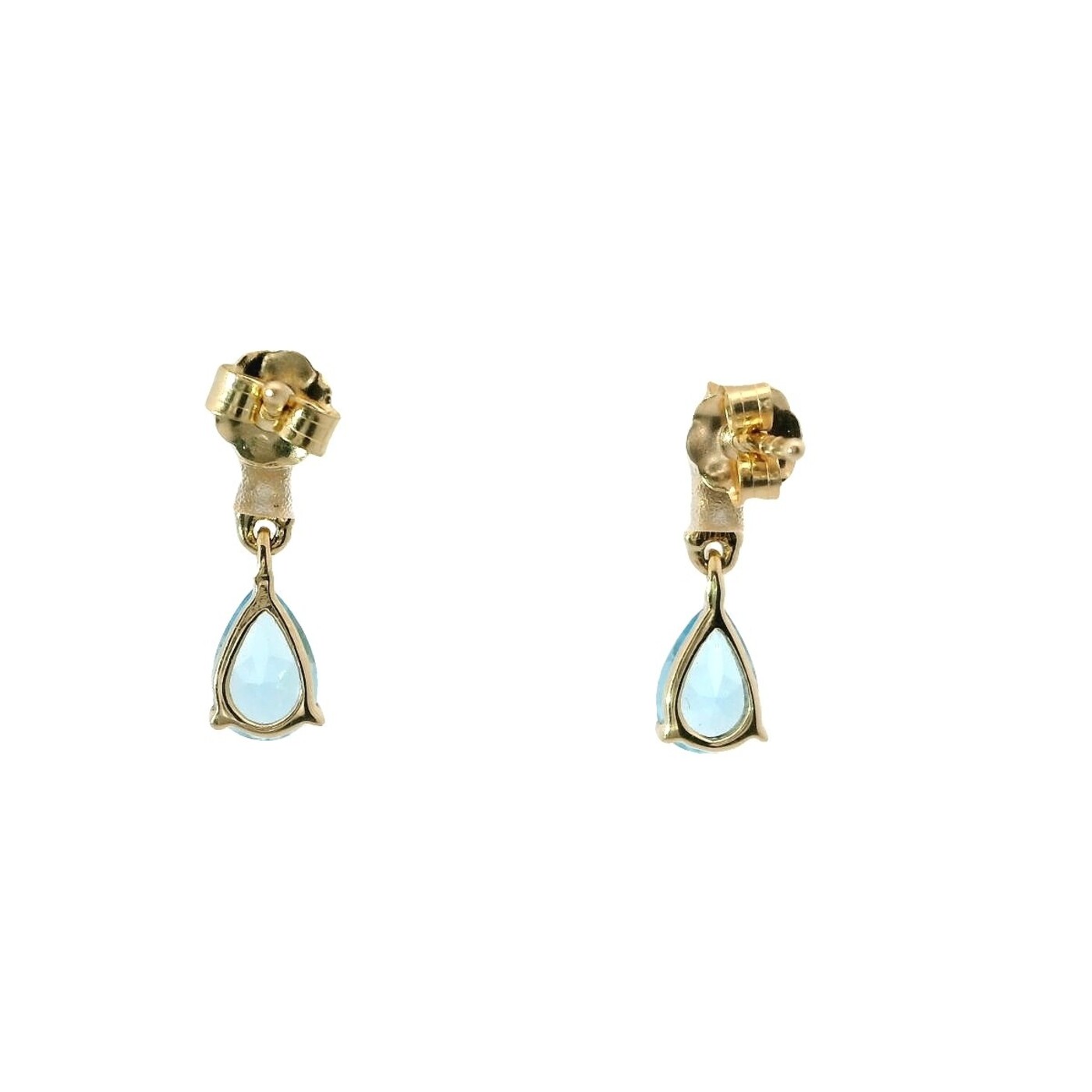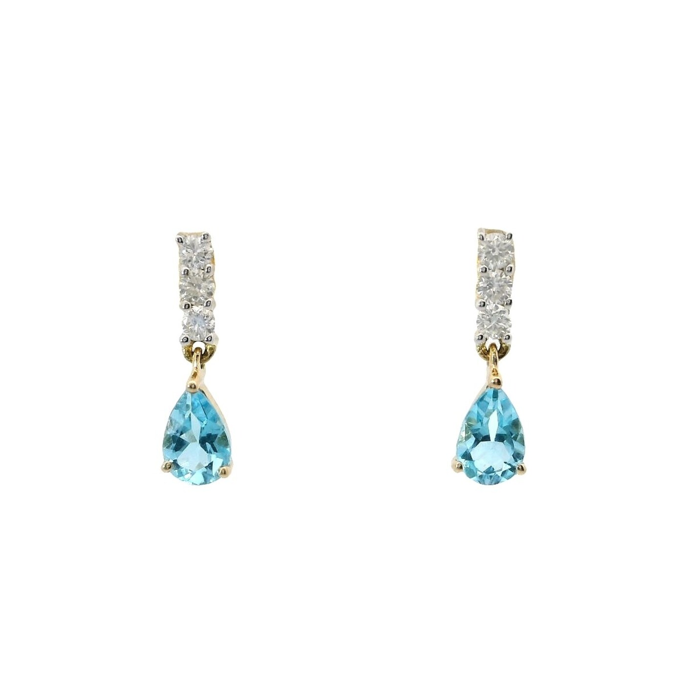 14K Yellow Gold Swiss Blue Topaz & Diamond Post Dangle Earrings