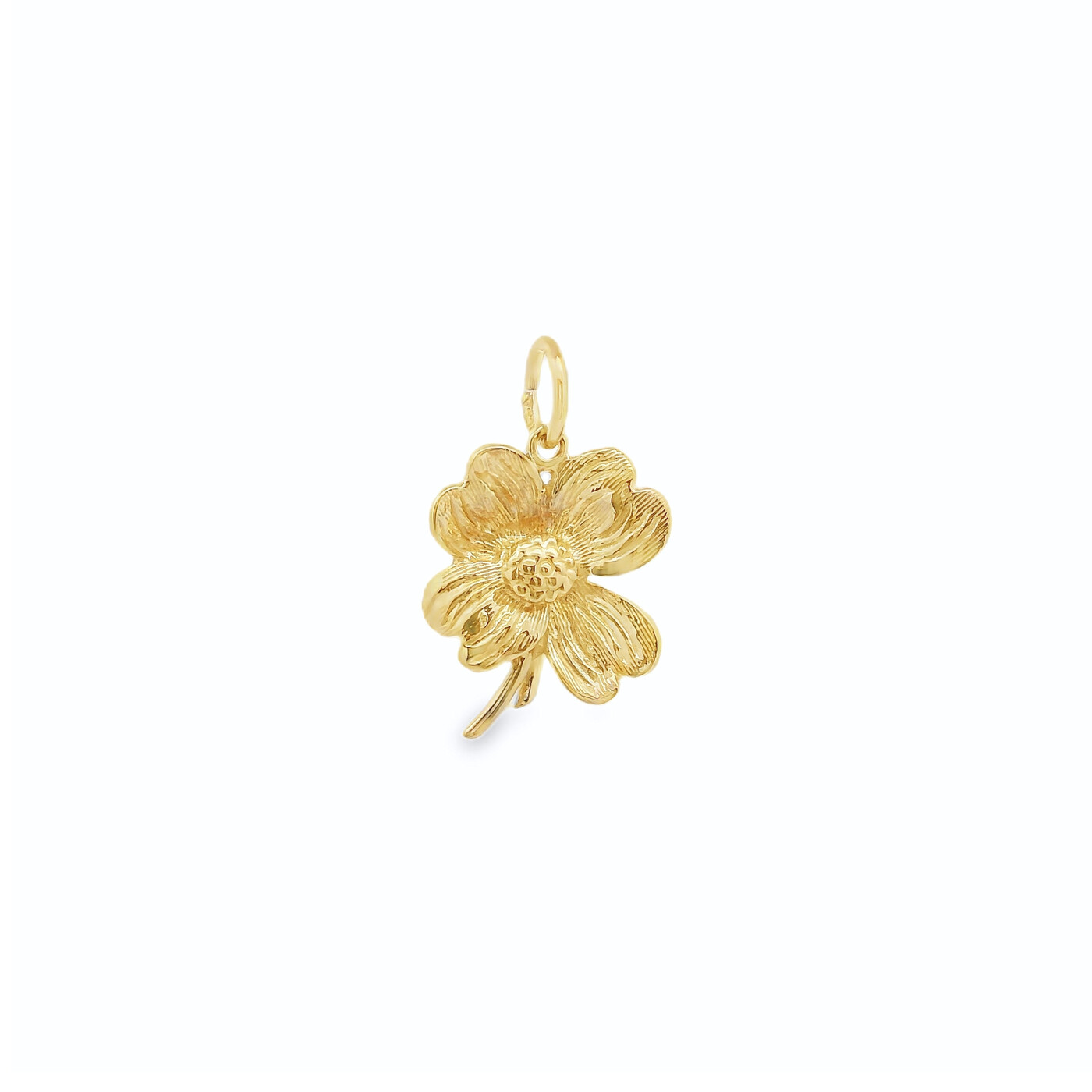 14KY GC Org Textured .10ct Lab Dia Dogwood Pendant Small