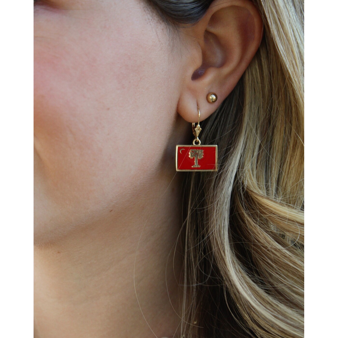 ITEM#: 32397-01f45f-091925This pair of yellow gold earrings features a bold red enameled Citadel flag with polished detail. It offers a timeless and spirited accent that honors Citadel pride.