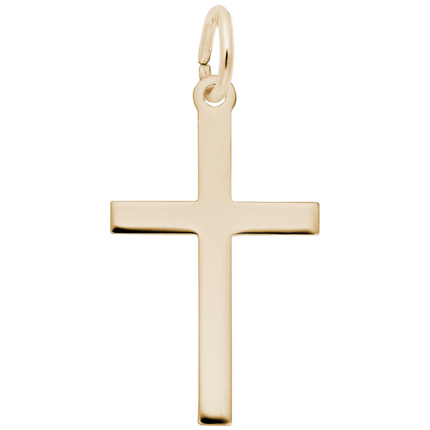 14K Yellow Gold Polished/ Etched Reversible Medium Cross