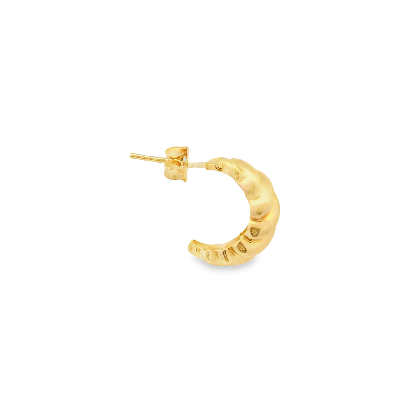 ITEM#: GCB00009406These yellow gold hoops feature a ribbed, tapered design that catches the light with refined texture. Classic and versatile, they bring timeless elegance to any style.