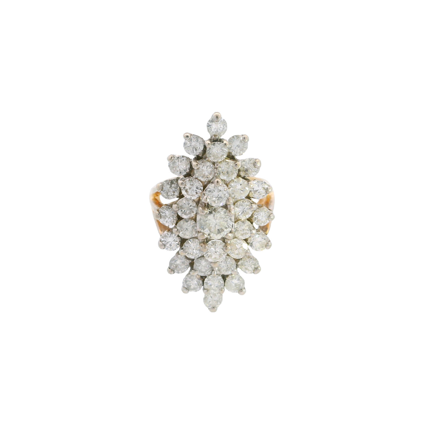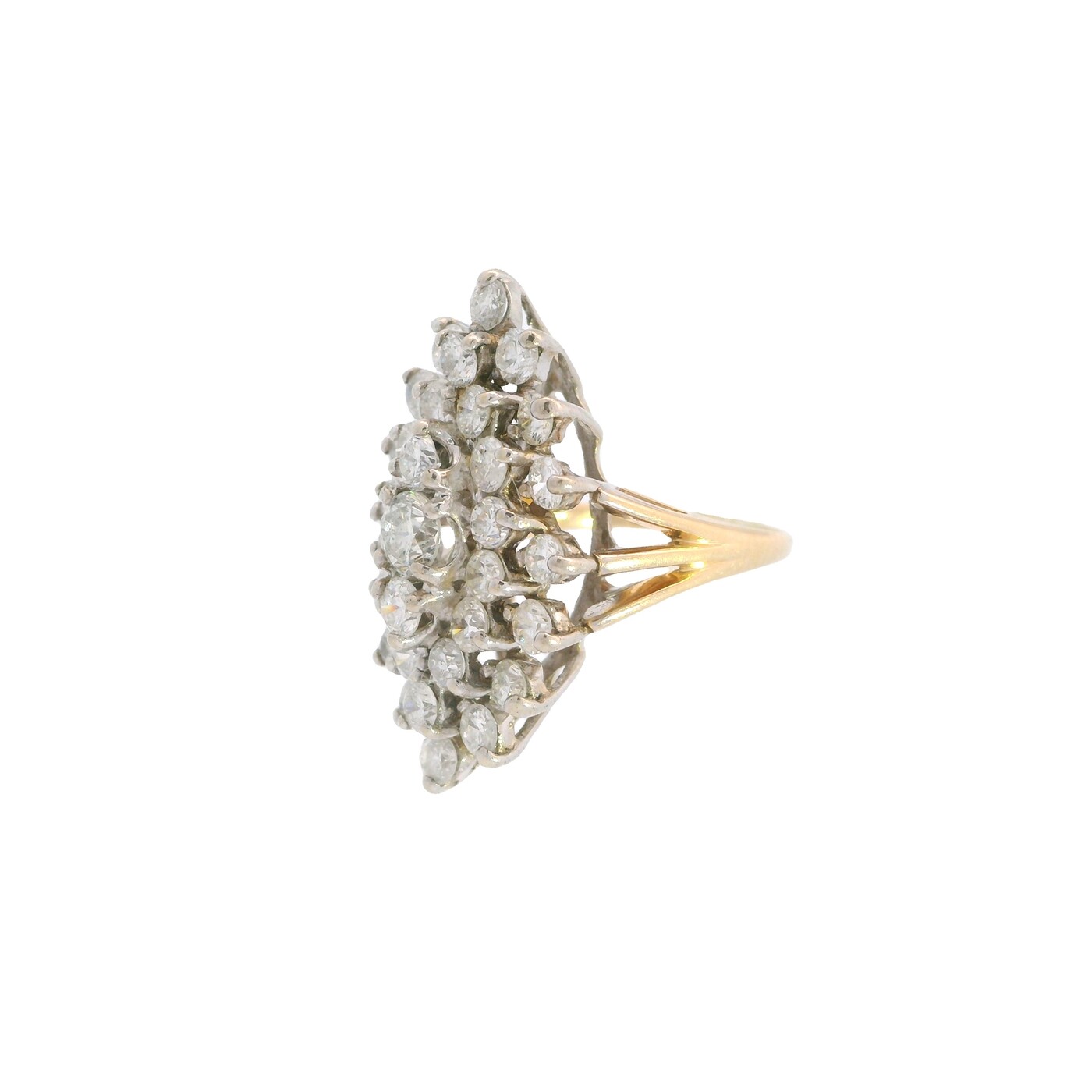 14K Yellow & White Gold 1960's Marquise Shaped Cluster Ring
