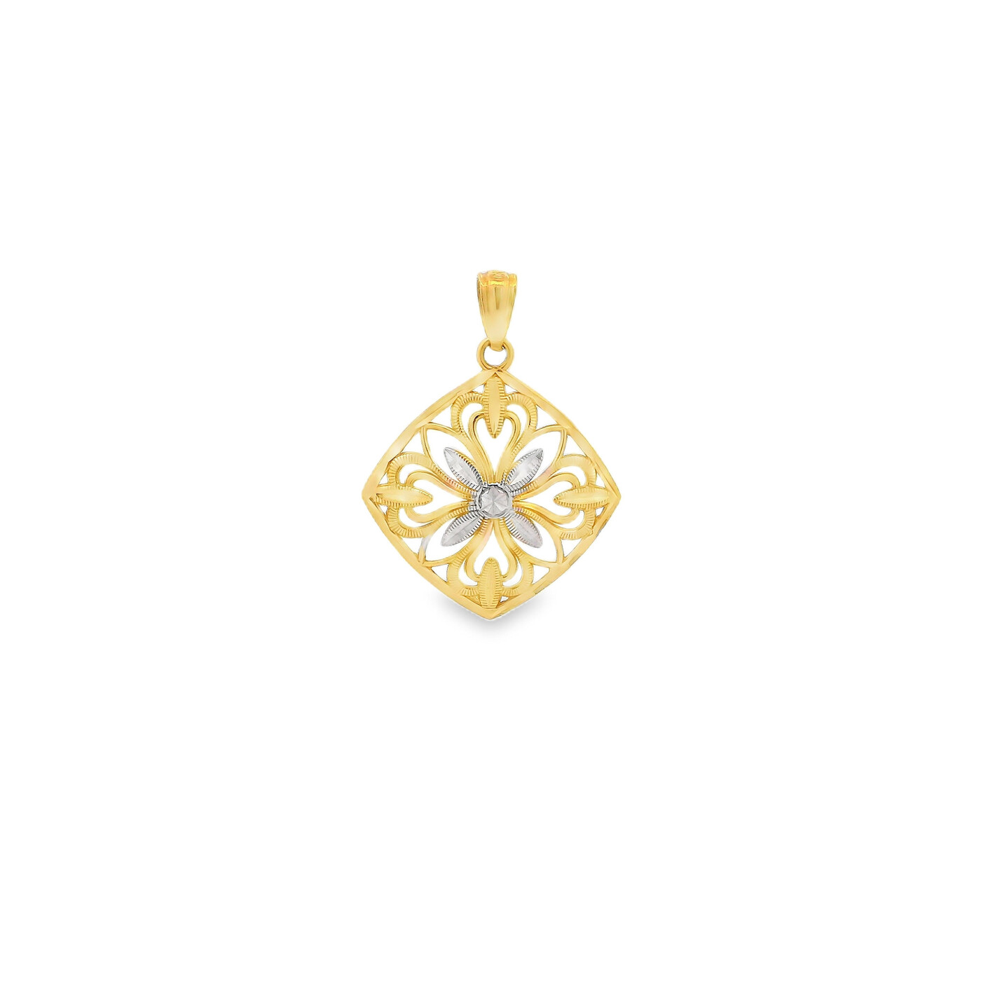 ITEM#: GC141582This yellow and white gold Magnolia Gate pendant has a beautiful, timeless charm inspired by classic Southern design. It’s great for adding a touch of refined detail to any necklace and brings a graceful, meaningful accent to your everyday style.