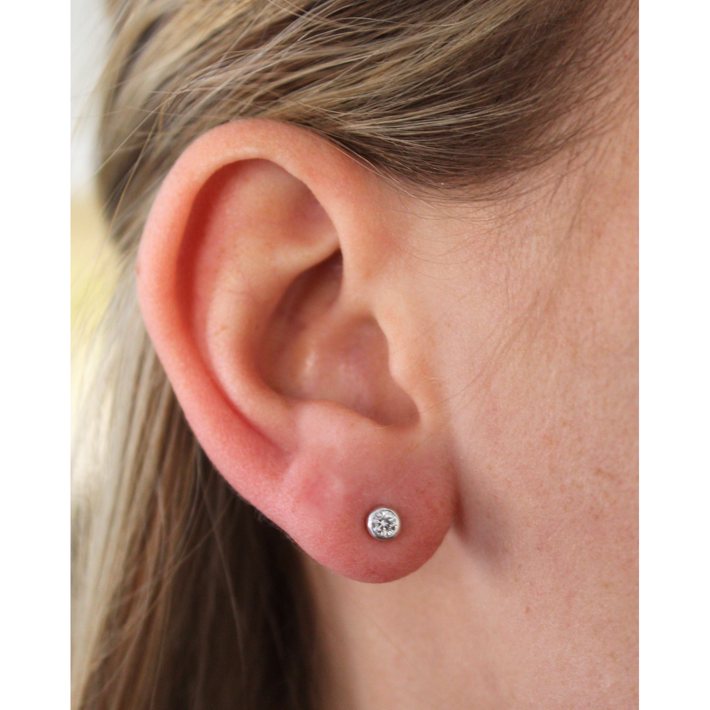 18K White Gold Estate Likely Early 2000's Bezel Set Solitaire Earrings