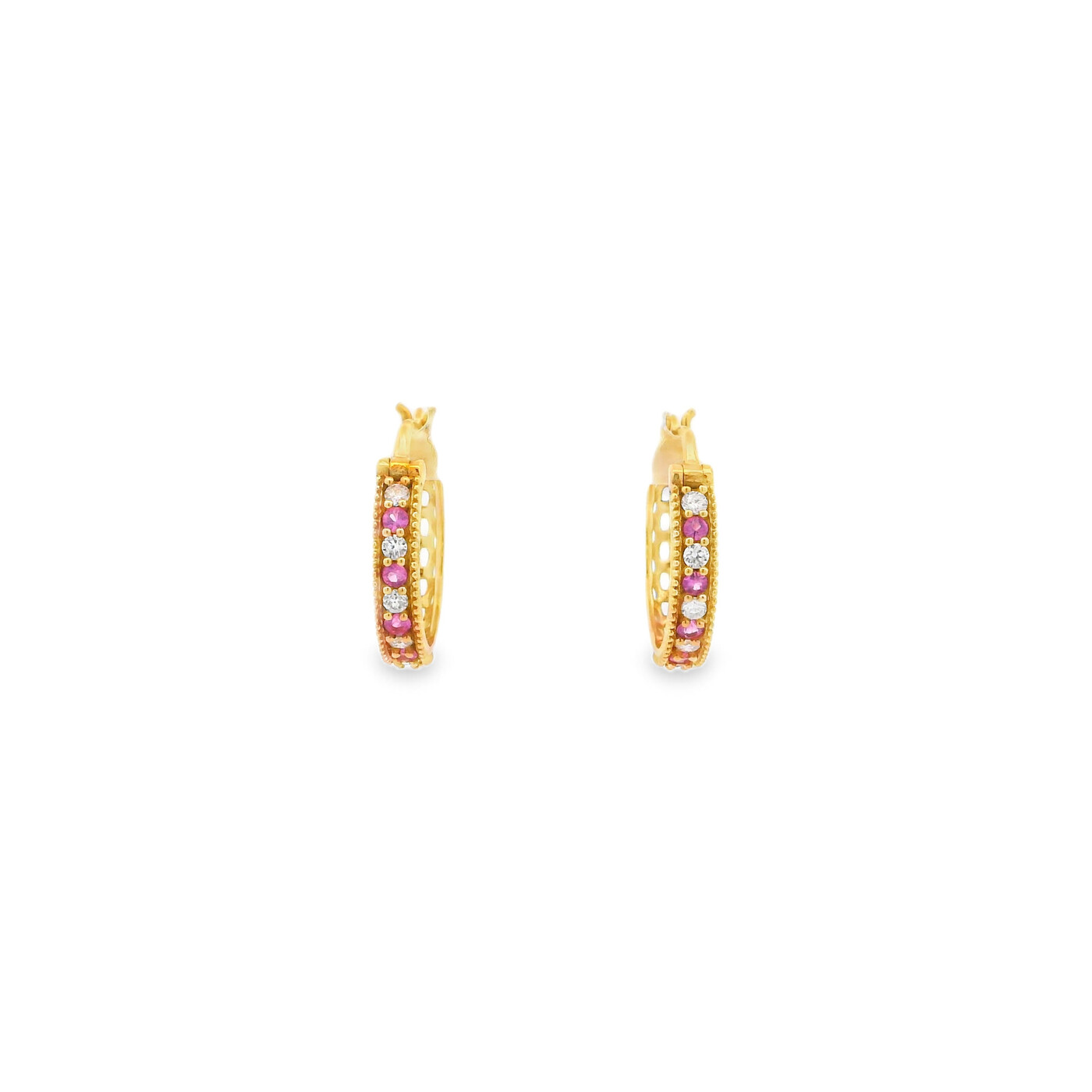 These yellow gold huggie hoops pair pink sapphires and diamonds in a graceful balance of color and sparkle. Refined and versatile, they bring a touch of modern elegance to any look.