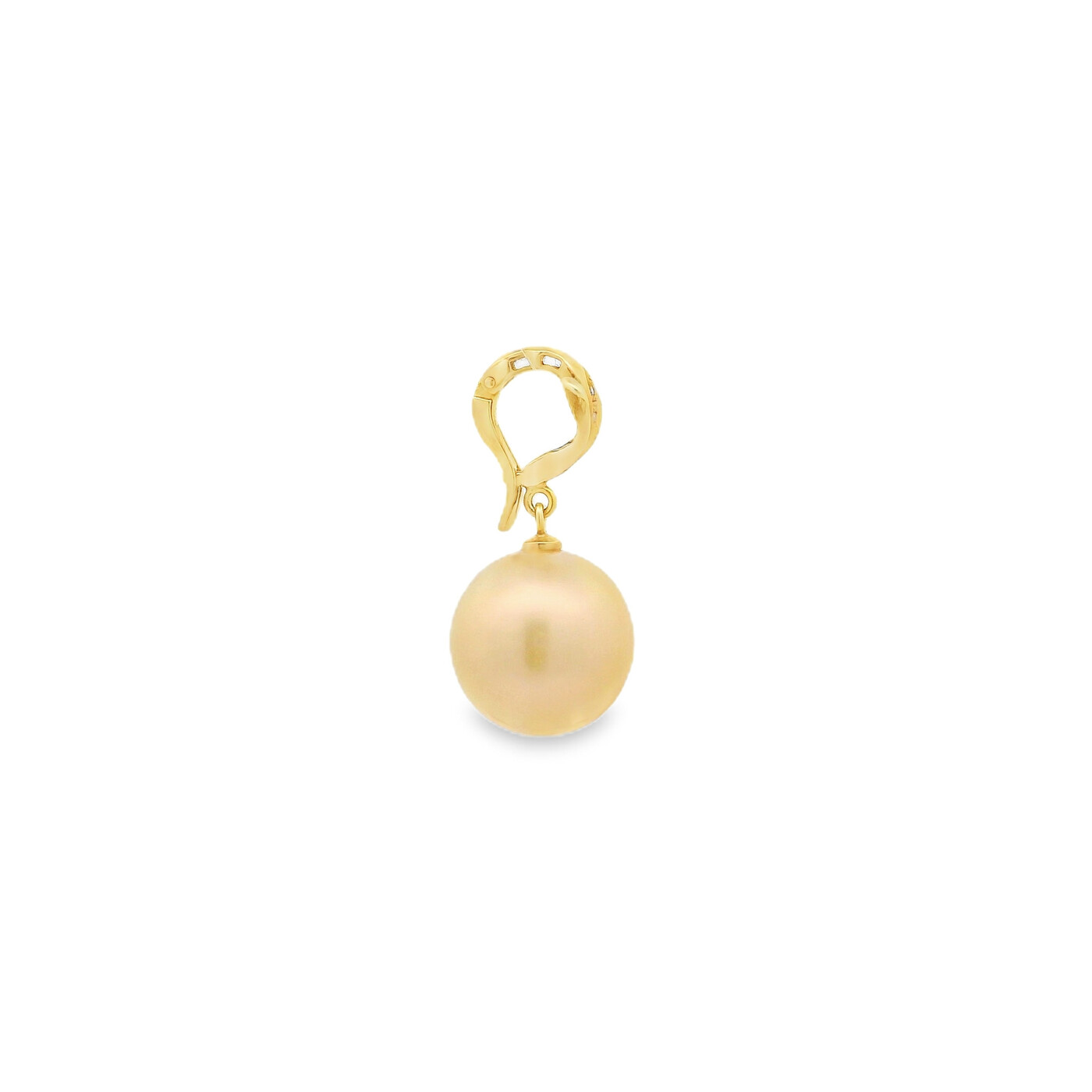 ITEM#: GCB00009385This estate yellow gold pendant showcases a golden South Sea pearl accented with a subtle diamond. It offers timeless elegance with rich, radiant color.