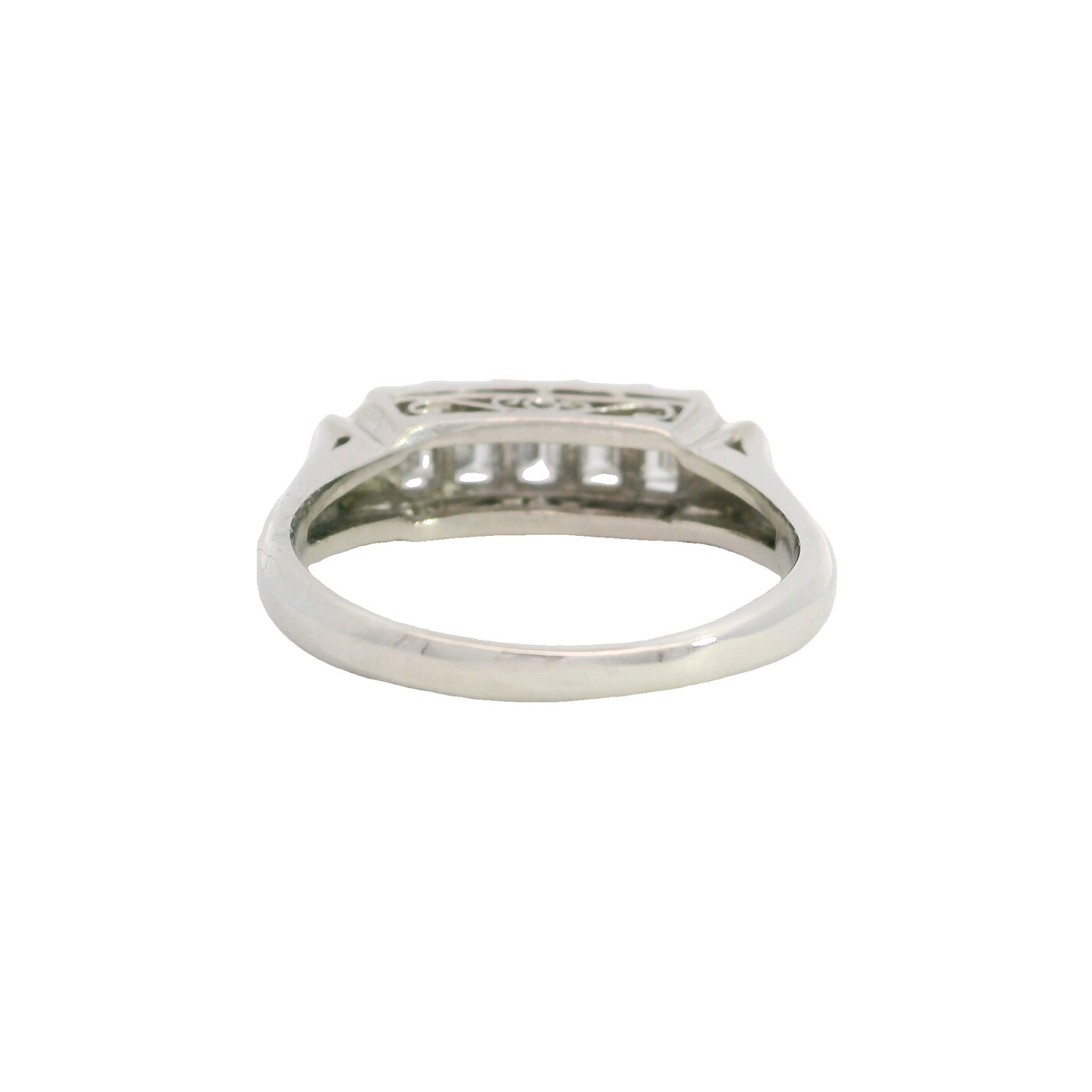 Stones: (5) Emerald Cut Diamonds equaling .61 Carats F Color VS1 Clarity