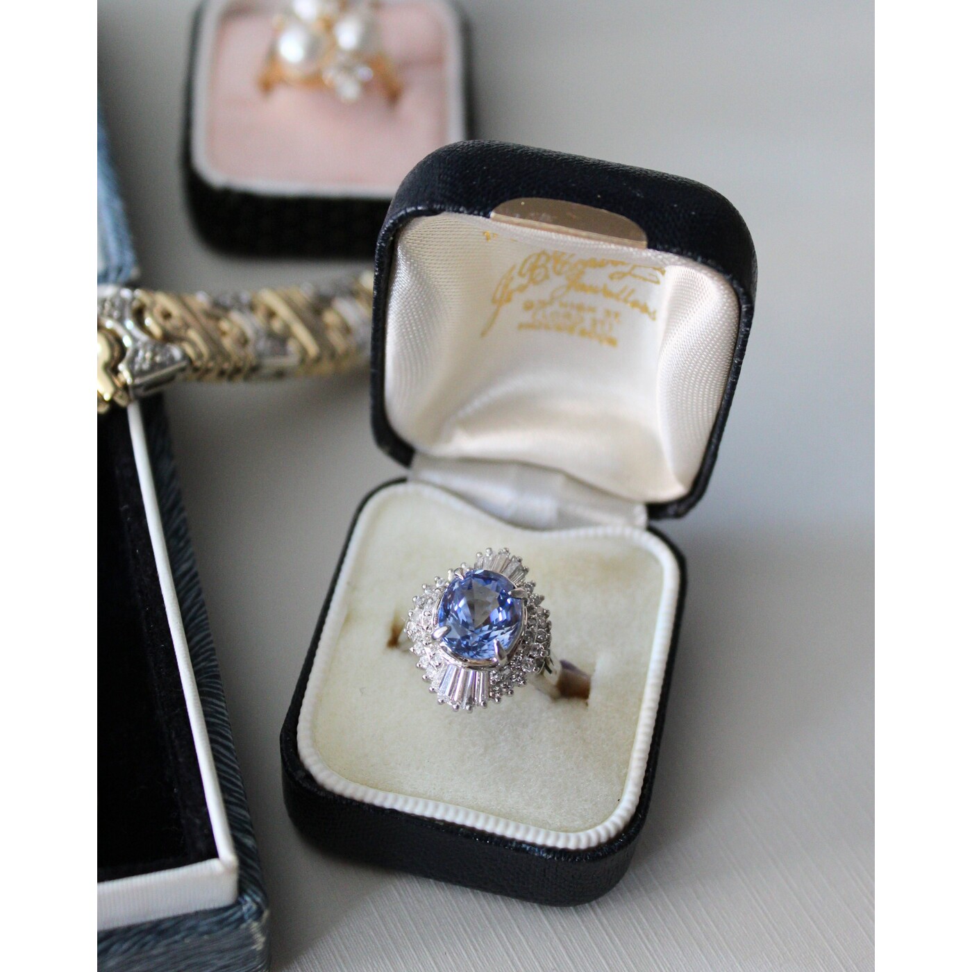 Platinum 1950's Ceylon Sapphire & Diamond Ballerina Style Ring