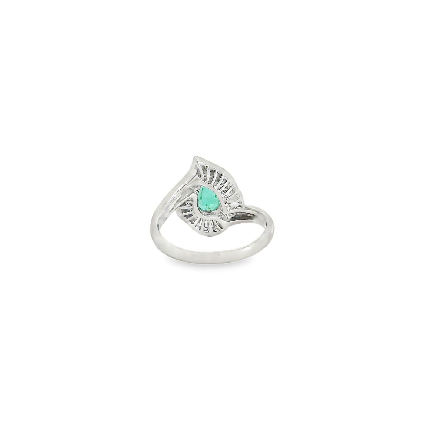 Stones: (1) Pear Shaped Natural Columbian Emerald weighing .72 Carats Transparent Green A Quality (Small chip seen on table of stone-price reflects wear) & Tapered Baguette Cut Diamonds equaling .49 Carats F-G Color SI1 Clarity