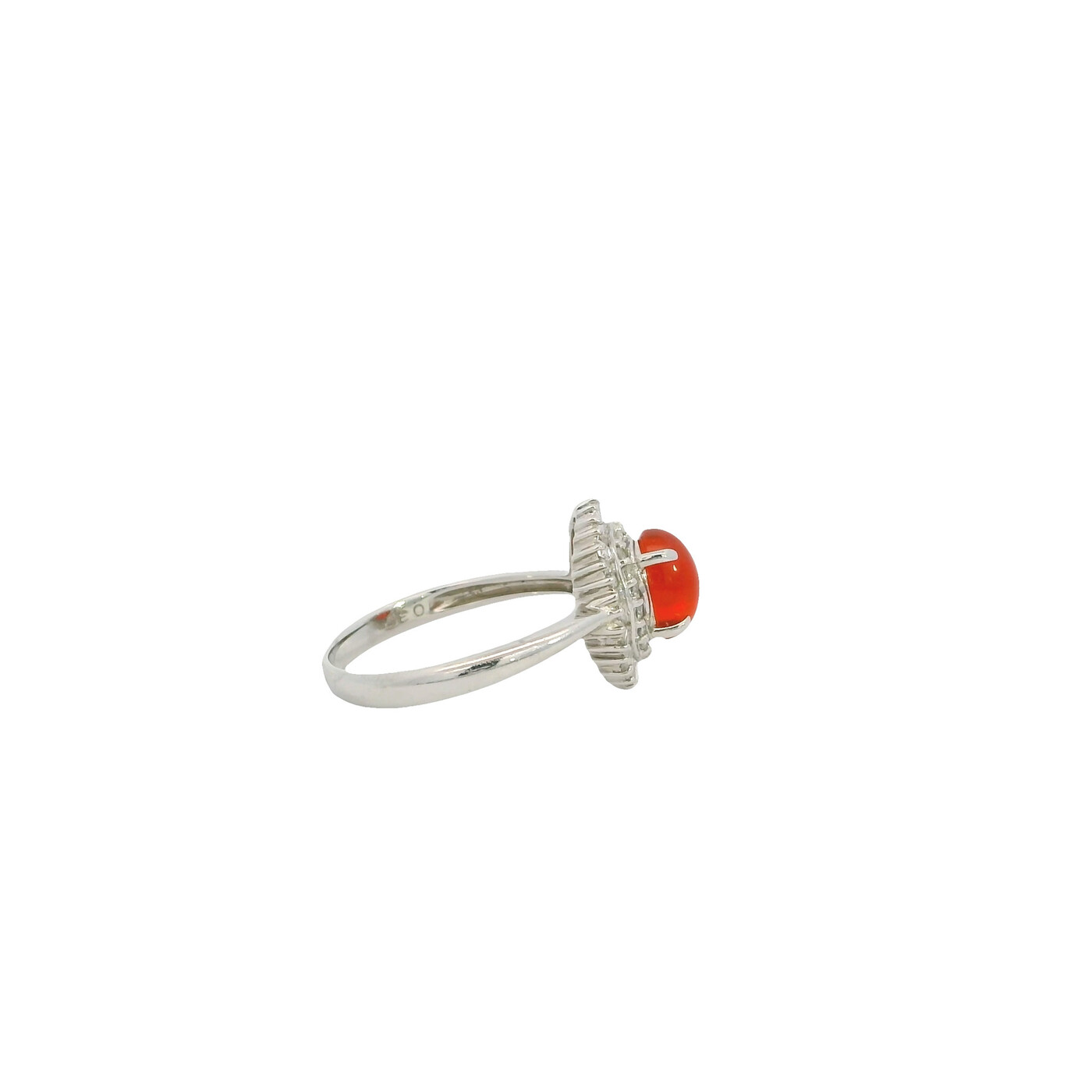 Stones: (1) Oval Cabochon Fire Opal .86 Carats & Baguette & Round Cut Diamonds equaling .35 Carats F-G Color SI1 Clarity