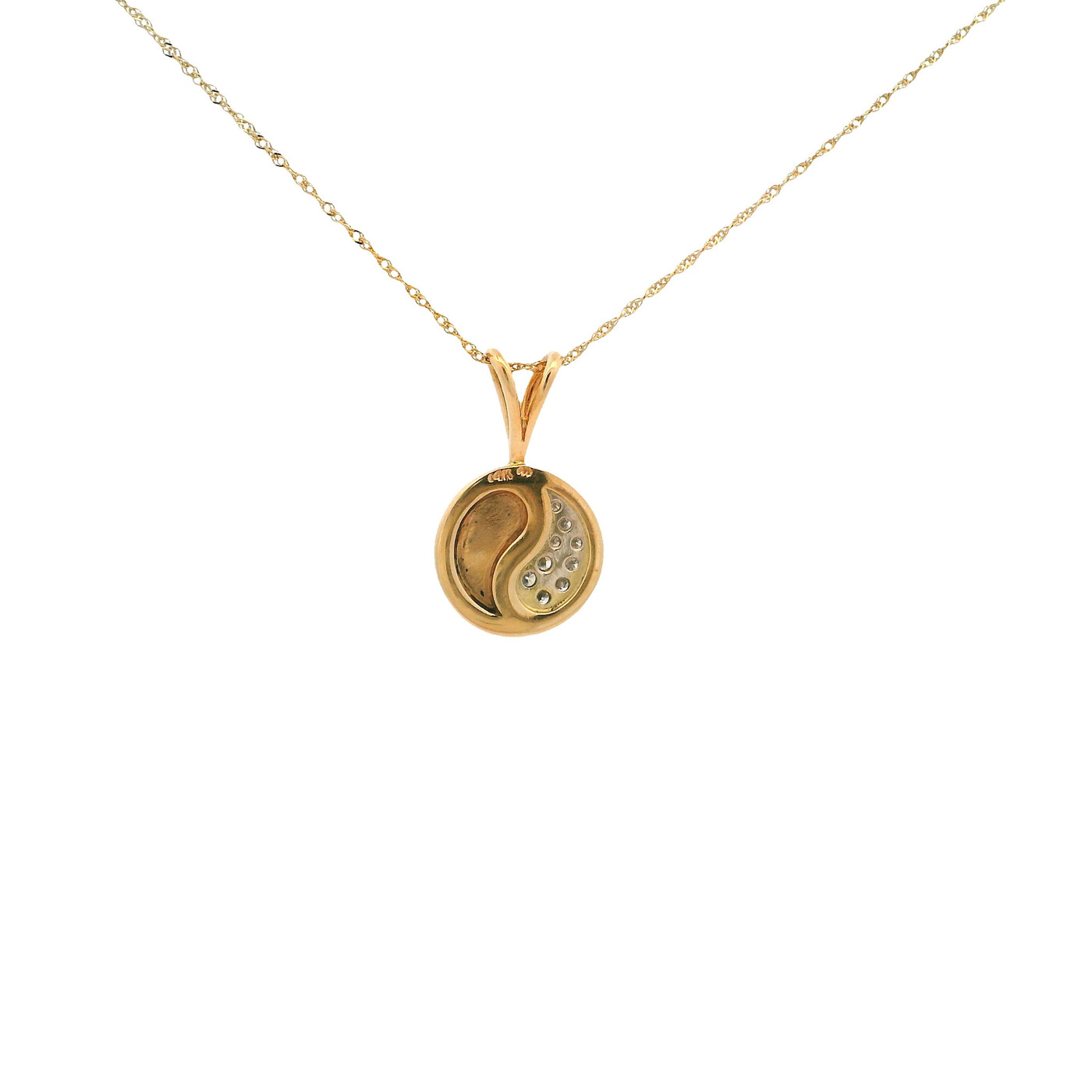 $1,295.00Black coral and diamonds form a yin yang design in 14K yellow gold, creating a meaningful piece that reflects balance and early 2000s style.