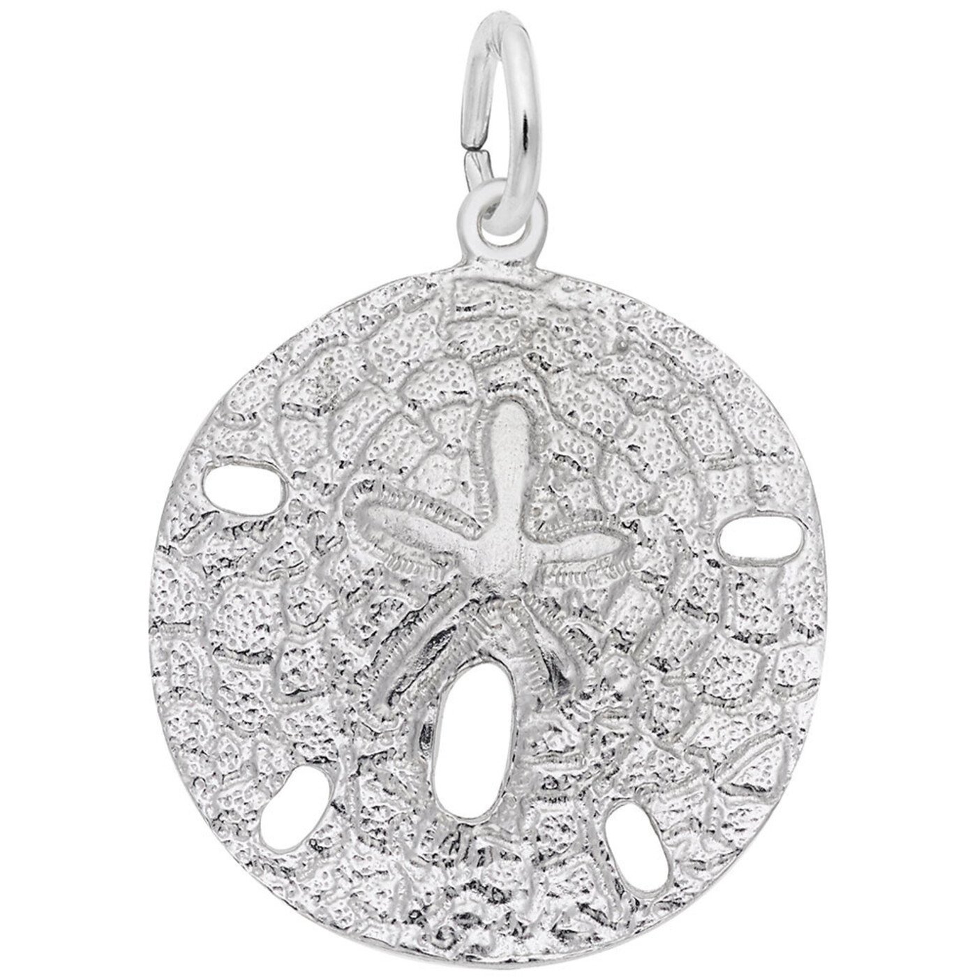 ITEM#: 10502201000This sterling silver charm features a 22mm sand dollar with subtle texture and polished highlights. Its design captures coastal charm, creating a timeless accent for any bracelet or necklace.