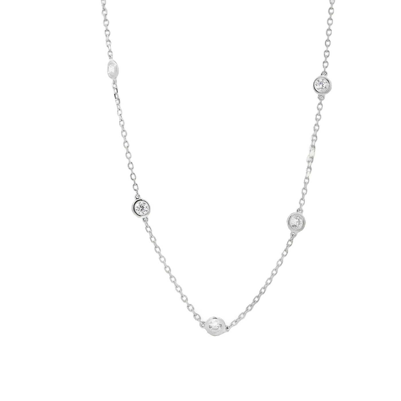 Sterling Silver Cubic Zirconia Station Necklace