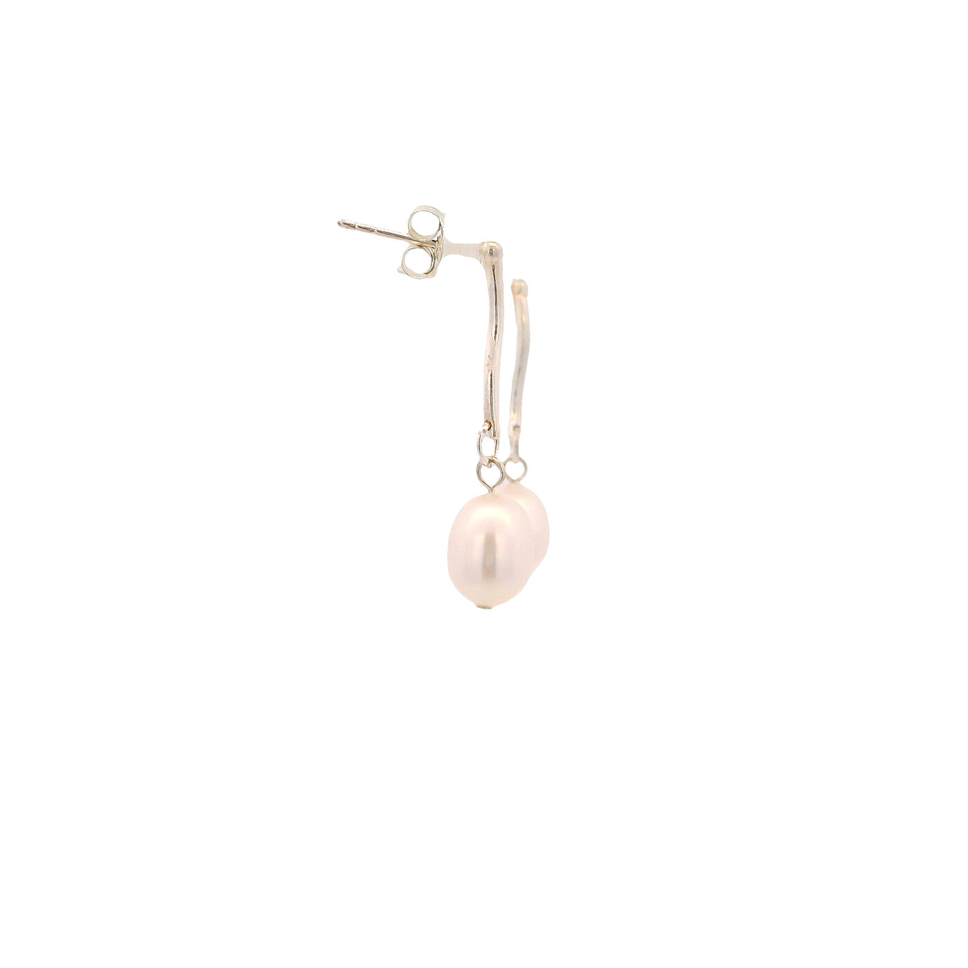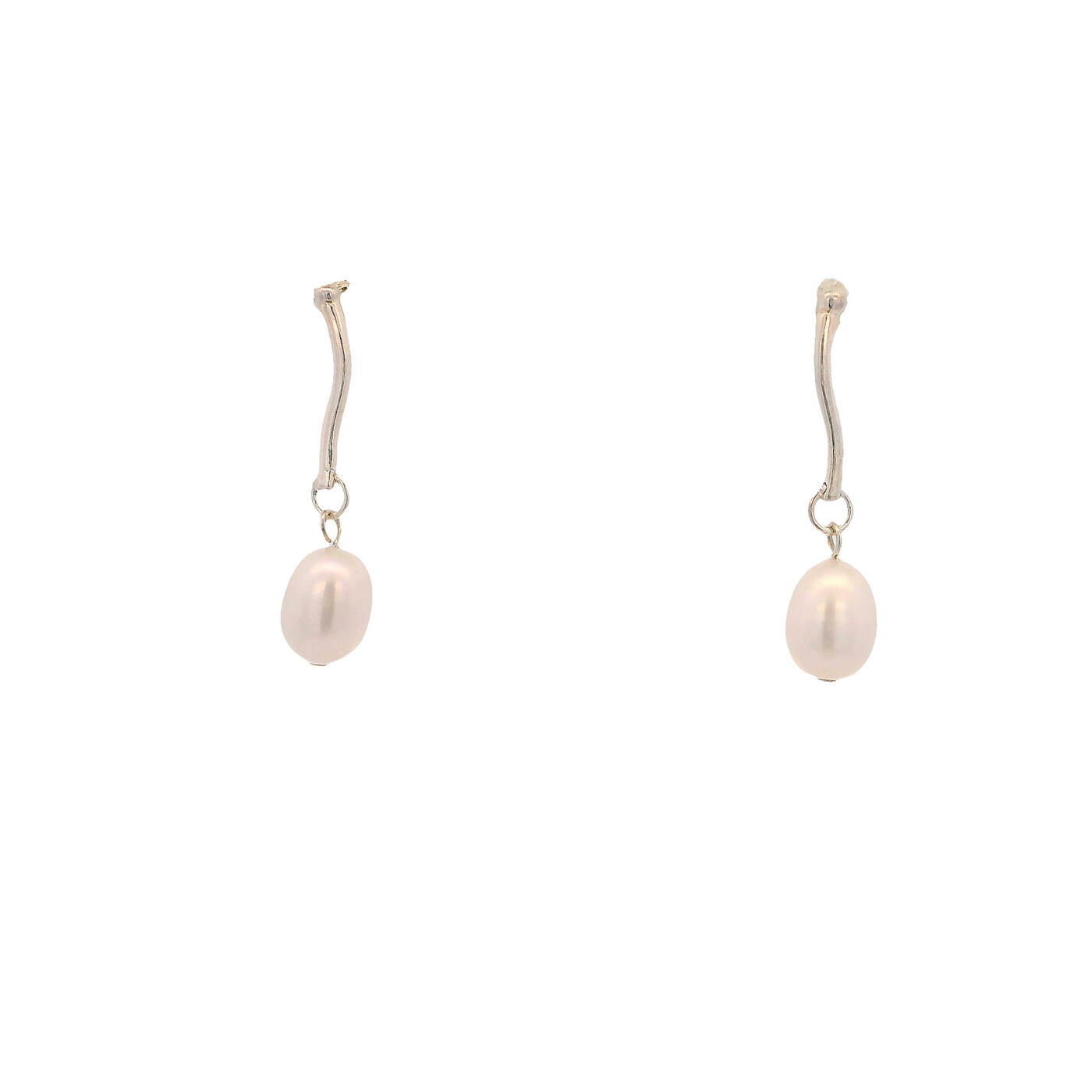 Sterling Silver Rice Pearl Post Dangle Earrings