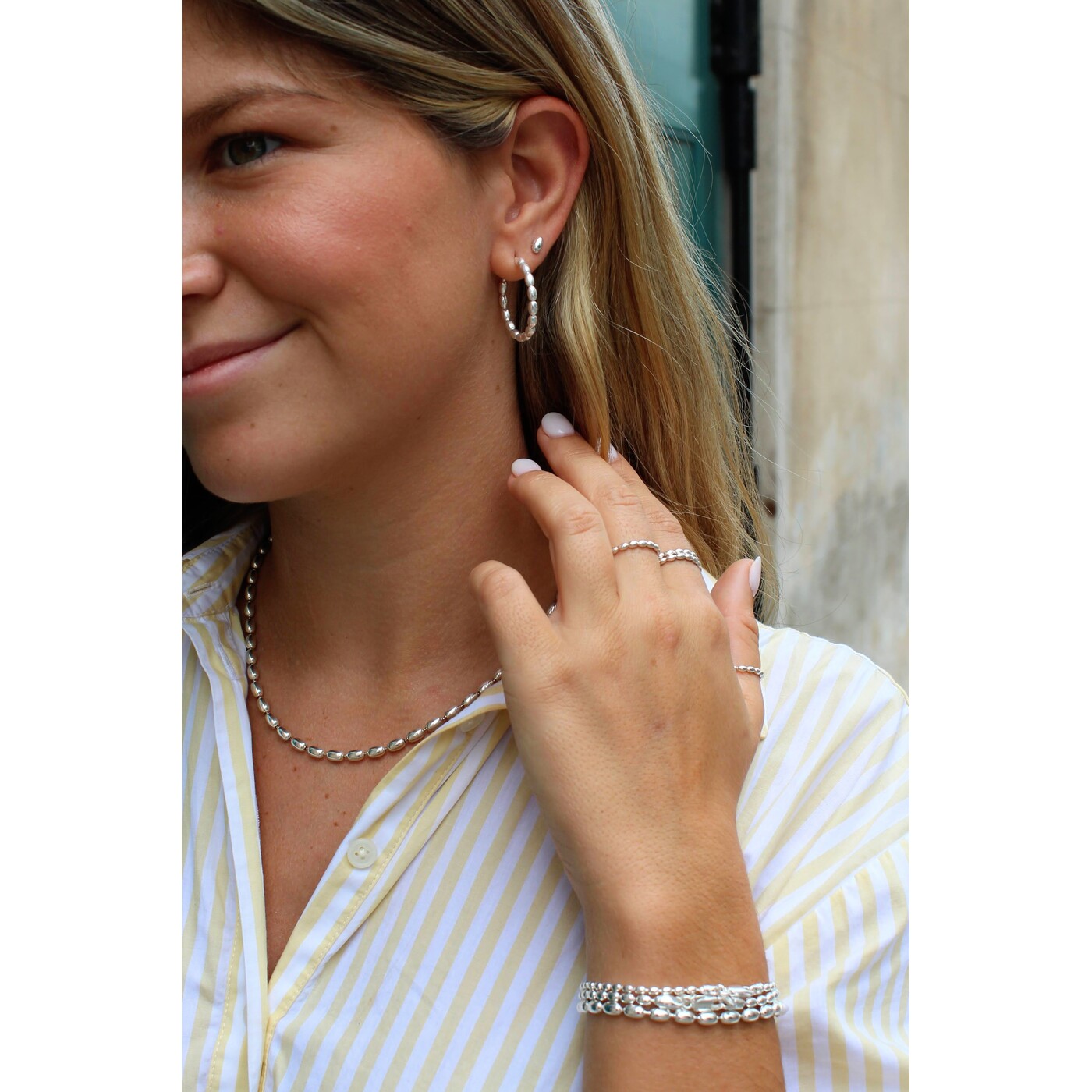 ITEM#: RICE-E08These jumbo rice bead earrings bring bold shine and smooth texture in a classic Charleston design. Their polished post style creates a striking look that blends timeless elegance with a modern edge.
