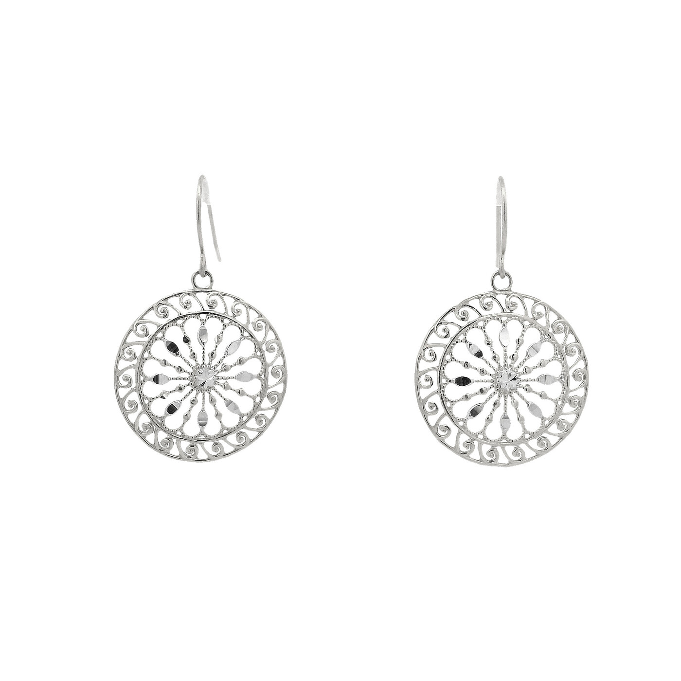 These sterling silver earrings feature a diamond cut City Hall gate design inspired by Charleston’s historic ironwork. The polished finish highlights the intricate pattern and creates a refined, timeless look.