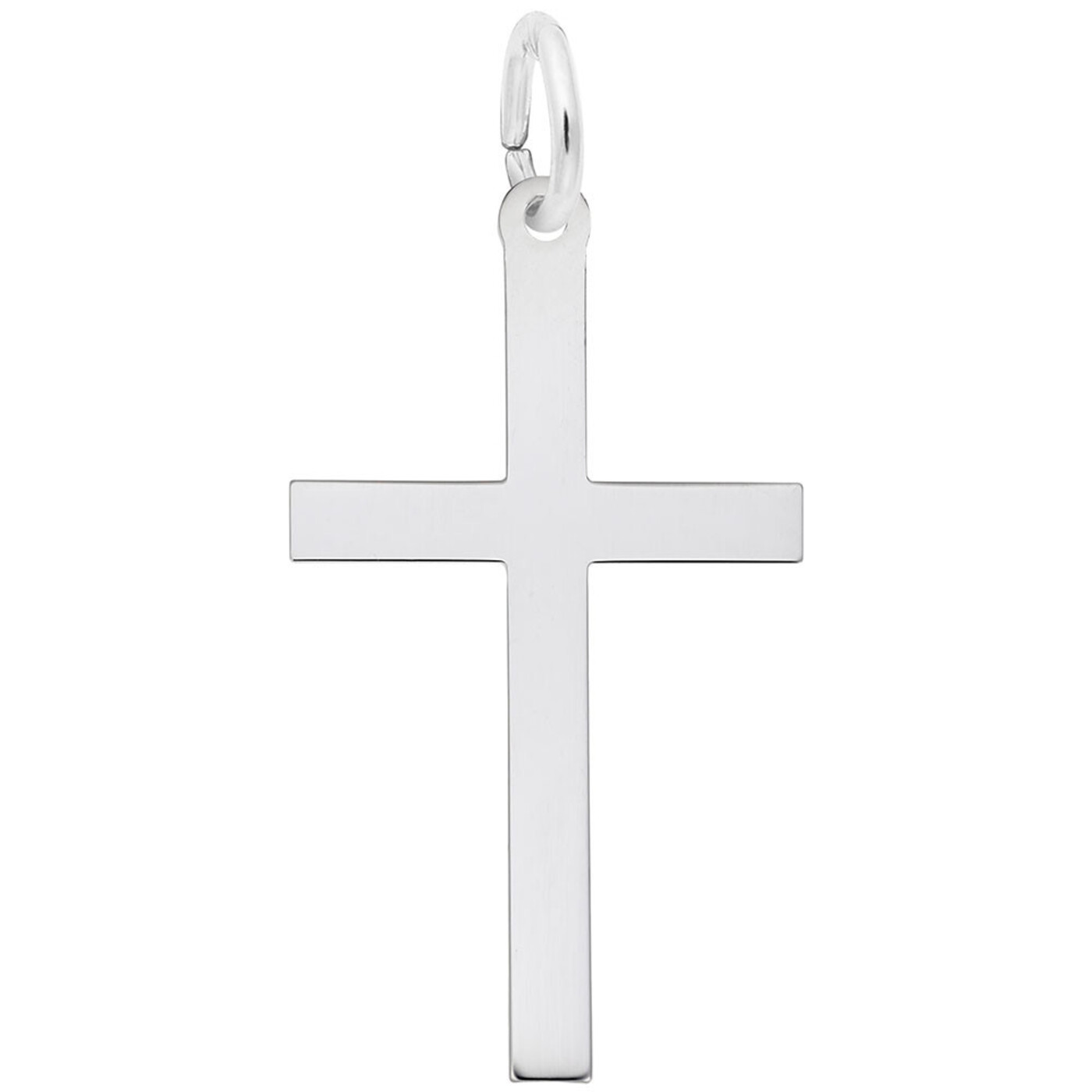 This sterling silver cross features a large, polished design. Its classic shape provides a timeless and versatile accent for any bracelet or necklace.