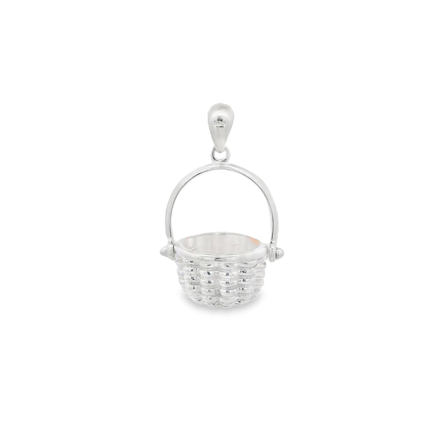 Sterling Silver Hinged Handle Extra Large Round Sweetgrass Basket Pendant