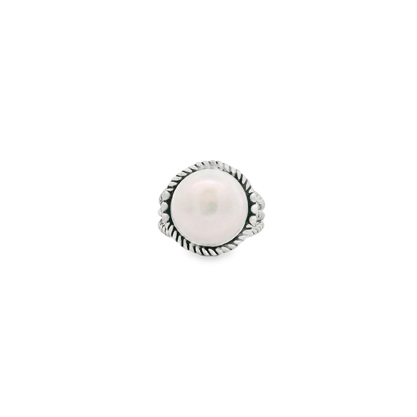 This sterling silver rope edge ring features a softly glowing freshwater pearl framed with an oxidized finish for added depth and character. It’s great for bringing a touch of classic elegance to your everyday style.