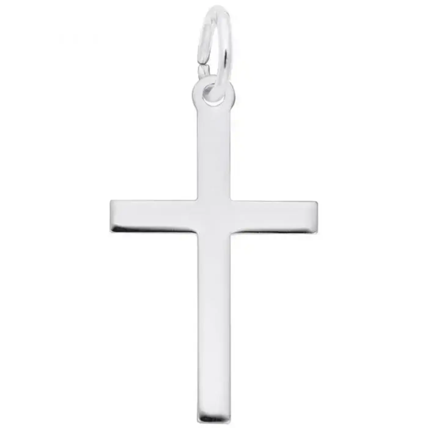 This sterling silver cross features a reversible design with polished and etched surfaces. Its classic style offers a versatile and timeless accent for any bracelet or necklace.