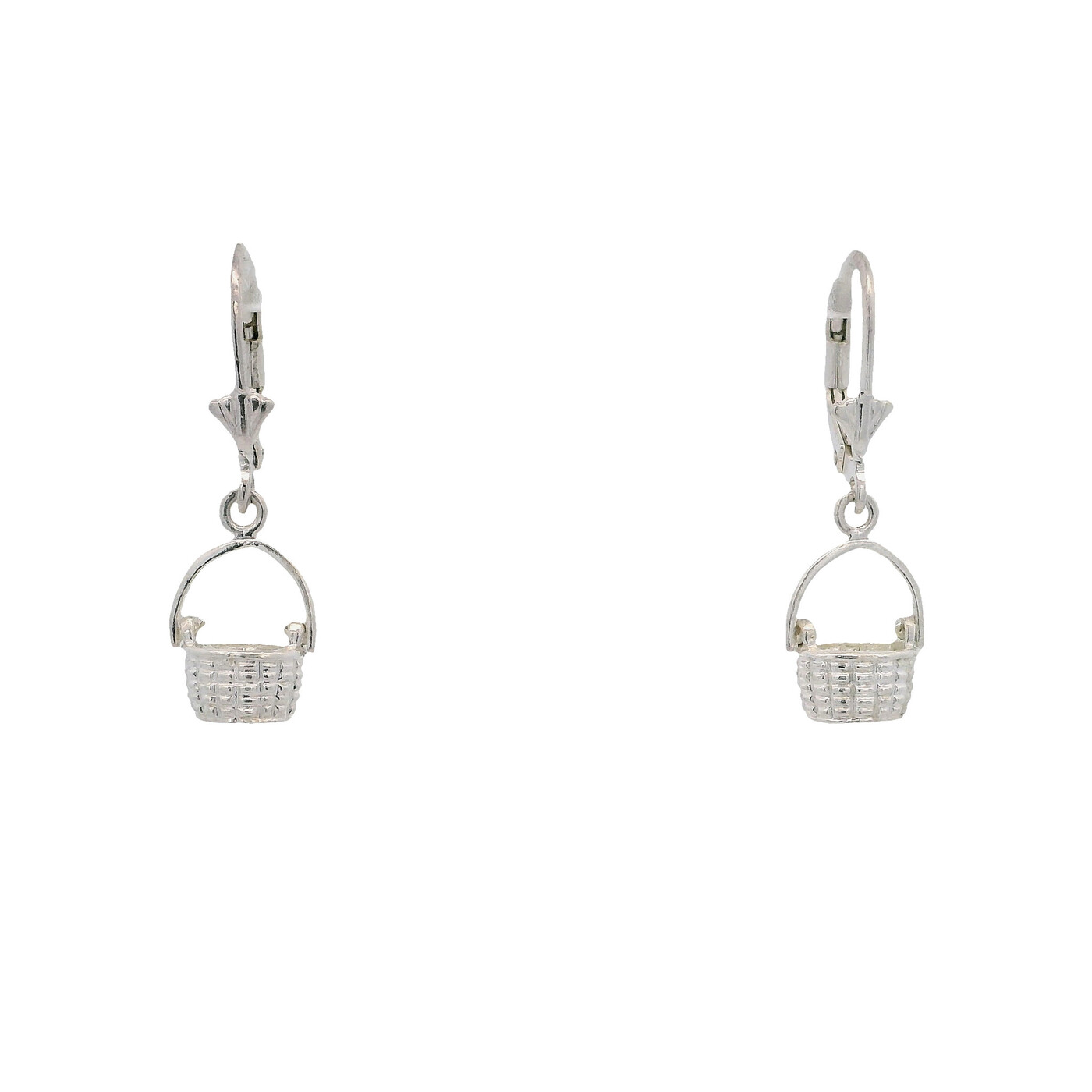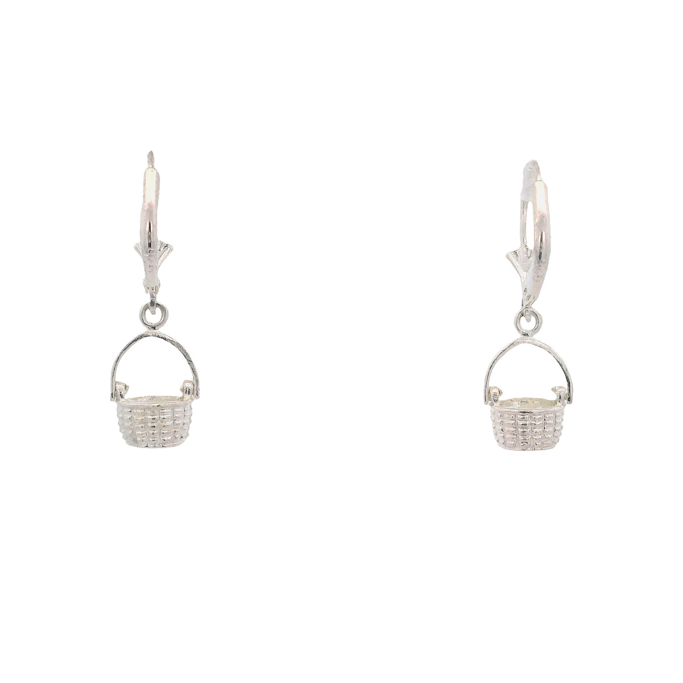 Sterling Silver Small Sweetgrass Basket with Hinged Handle Leverback Earrings